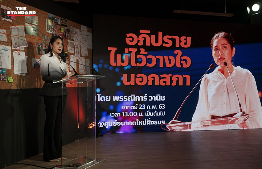 เมื่อวันที่ 23 กุมภาพันธ์ ที่ศูนย์ประสานงานพรรคอนาคตใหม่ ฝั่งธนบุรี พรรณิการ์ วานิช อดีตสมาชิกสภาผู้แทนราษฎรพรรคอนาคตใหม่และโฆษกพรรคอนาคตใหม่ เปิดอภิปรายไม่ไว้วางใจรัฐบาลนอกสภา สืบเนื่องจากที่พรรคอนาคตใหม่ถูกยุบพรรค อันส่งผลให้พรรณิการ์และกรรมการบริหารพรรคอนาคตใหม่ถูกตัดสิทธิ์ทางการเมืองเป็นเวลา 10 ปี และไม่สามารถอภิปรายไม่ไว้วางใจรัฐบาลในรัฐสภาได้ โดยบรรยากาศภายในศูนย์ประสานงานฝั่งธนฯ นั้นมีสื่อมวลชนและประชาชนร่วมรับฟังการอภิปรายไม่ไว้วางใจรัฐบาลนอกสภาเป็นจำนวนมาก