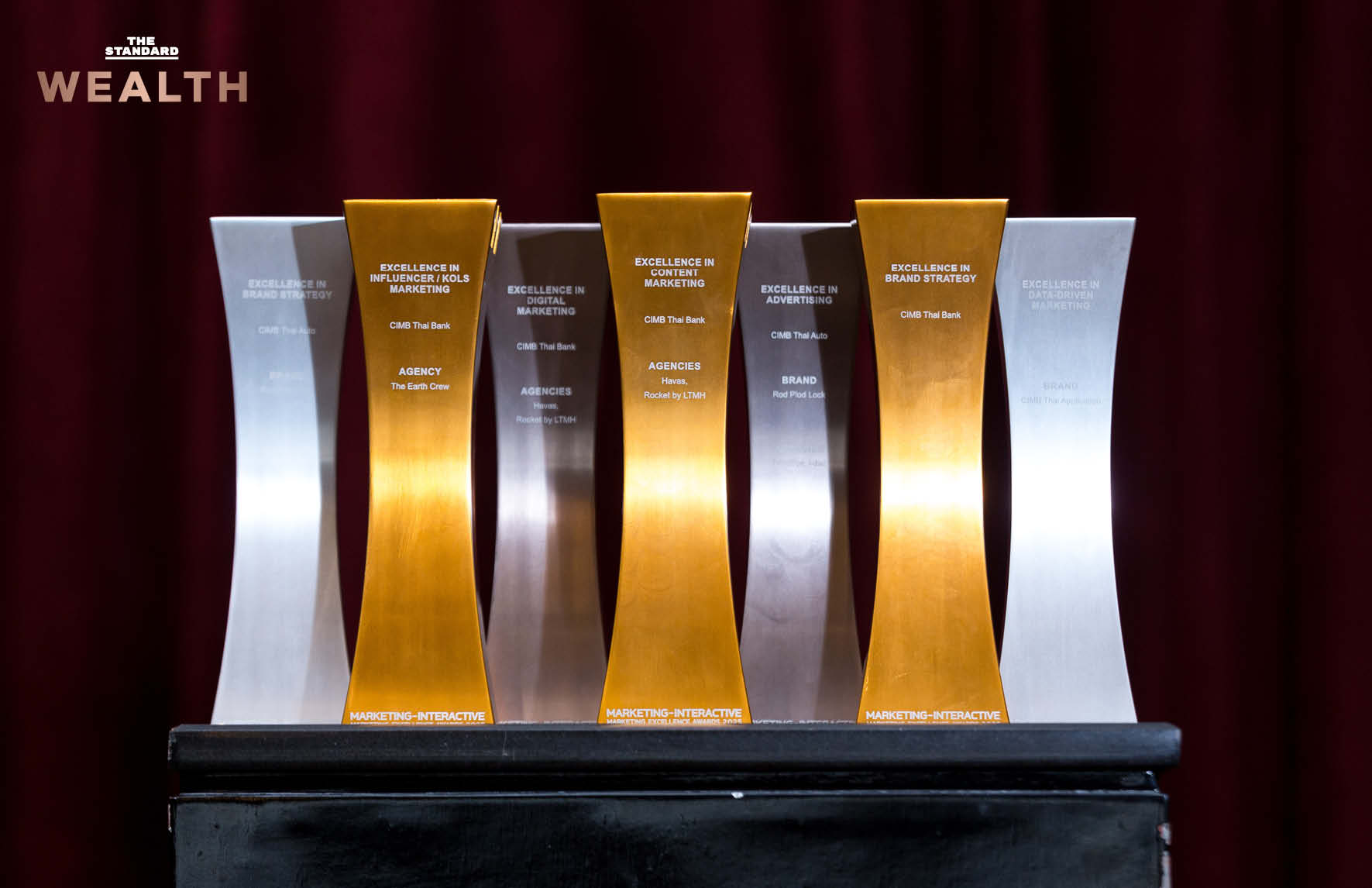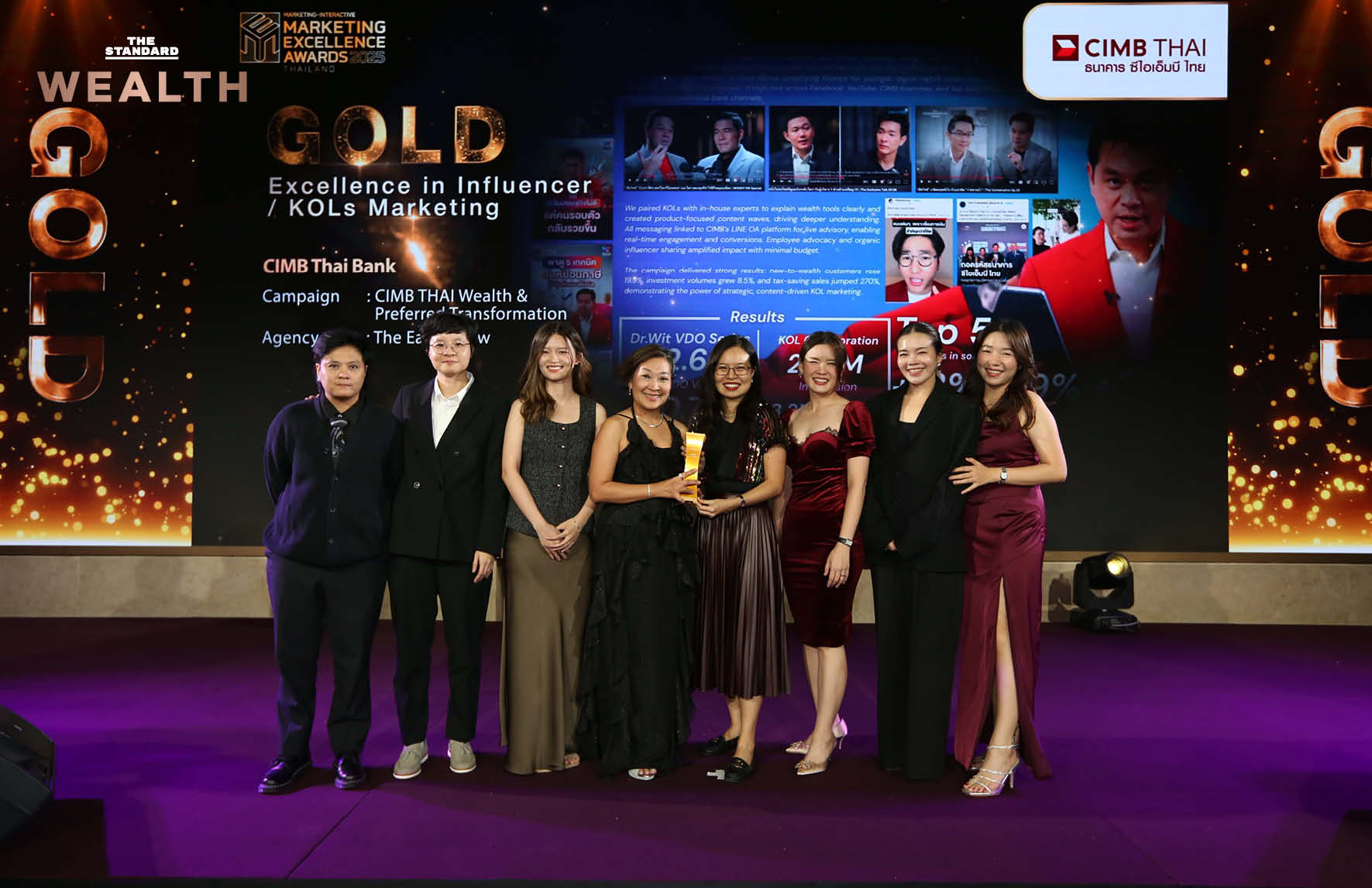 - CIMB THAI Wealth & Preferred Transformation คว้า 4 รางวัลใหญ่: ระดับ Gold 3 สาขา ได้แก่ Excellence in Brand Strategy, Excellence in Content Marketing และ Excellence in Influencer / KOLs Marketing และ ระดับ Bronze สาขา Excellence in Digital Marketing ตอกย้ำความมุ่งมั่นในการเปิดโอกาสให้ลูกค้าเข้าถึงความรู้ด้านการเงินการลงทุน ผ่านแพลตฟอร์ม LINE OA: Wealth & Preferred ที่ผสานเทคโนโลยีเข้ากับความเชี่ยวชาญของที่ปรึกษา สื่อสารเนื้อหาการเงินที่เข้าใจง่าย เข้าถึงได้ และสร้างความมั่นใจในทุกการตัดสินใจของลูกค้า