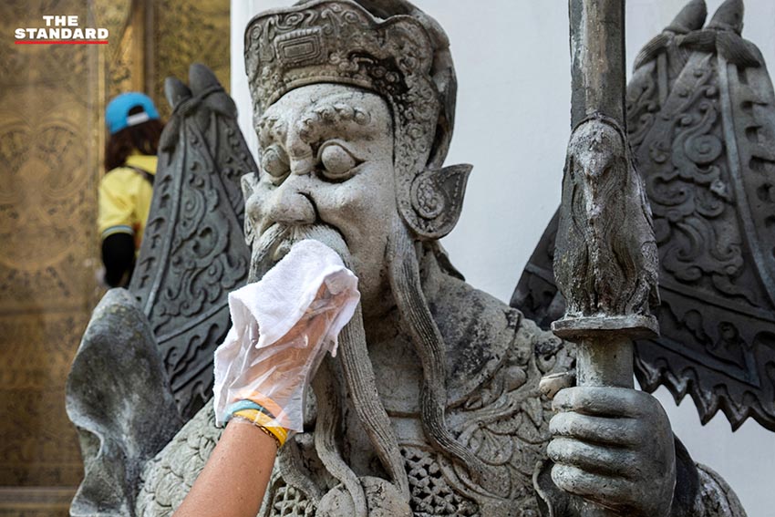วันนี้ (13 มีนาคม) เป็นอีกวันที่คณะจิตอาสา ‘เราทำความดี ด้วยหัวใจ’ ลงพื้นที่วัดพระเชตุพนวิมลมังคลารามราชวรมหาวิหาร (วัดโพธิ์) เพื่อทำกิจกรรมรณรงค์ป้องกันการแพร่ระบาดของโรคโควิด-19 อันส่งผลกระทบต่อคณะสงฆ์และประชาชนตามมาตรการป้องกันการแพร่ระบาดของรัฐบาล