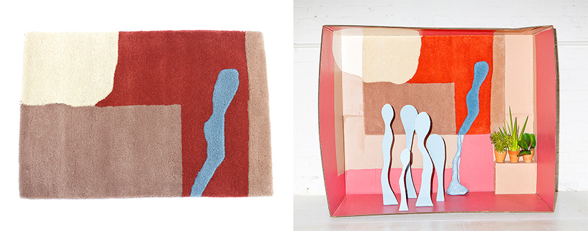 ภาพที่มองเห็นทางสายตาถูกลดทอนลงให้เหลือเพียงองค์ประกอบง่ายๆ ที่มีความเจ๋งอยู่ตรงที่คนมองเองก็นึกออกด้วยว่าดีไซเนอร์ต้องการจะสื่อหรือบอกเล่าเรื่องราวอะไร นอกจากการใช้เทคนิคทางศิลปะอย่างลายเส้น การจับคู่สี และการวางองค์ประกอบแล้ว ยังใช้เทคนิคการทำพรมในแบบสแกนดิเนเวียเข้าร่วมในชิ้นงานด้วย อย่างเท็กซ์เจอร์ที่แตกต่างกันของแต่ละรูปร่างในพรมผืนเดียว