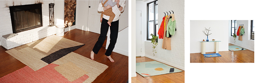ลากยาวไปจนถึงการคิดต่อว่าผืนพรมแต่ละชิ้นสามารถถูกพัฒนาต่อไปเป็นงานอินสตอลเลชันแบบไหนได้บ้าง ทำให้พรมหนึ่งผืนจะวางบนพื้นก็ได้ แขวนกับผนังก็ได้ หรือแม้กระทั่งจะห้อยแขวนเป็นโมบายล์ก็ทำให้ห้องสวยได้เหมือนกัน