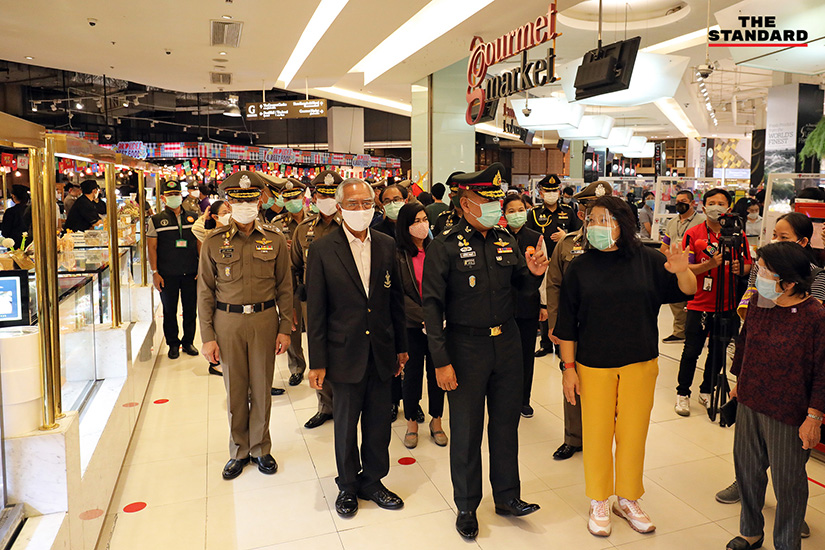 วันนี้ (2 พฤษภาคม) พล.อ. พรพิพัฒน์ เบญญศรี ผู้บัญชาการทหารสูงสุด ในฐานะหัวหน้าศูนย์ปฏิบัติการแก้ไขสถานการณ์ฉุกเฉินด้านความมั่นคงของ ศบค. พร้อมด้วยพล.ต.อ. สุวัฒน์ แจ้งยอดสุข รองผู้บัญชาการตำรวจแห่งชาติ และ วัลลภ สุวรรณดี ประธานที่ปรึกษาของผู้ว่าราชการกรุงเทพมหานคร เดินทางตรวจร้านอาหารและซูเปอร์มาร์เก็ตภายในห้างสรรพสินค้าพารากอน และศูนย์การค้าเซ็นทรัล ชิดลม เพื่อดูภาพรวมการเตรียมความพร้อม ก่อนที่จะมีมาตรการผ่อนคลายในวันที่ 3 พฤษภาคมนี้