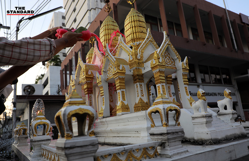 ต่อมาในเวลา 17.56 น. ได้มีเปลวไฟบริเวณศาลพระภูมิภายใน สน.ดินแดง เจ้าหน้าที่ได้นำถังดับเพลิงเข้าฉีดสกัด และทำให้เจ้าหน้าที่ตำรวจควบคุมฝูงชน (คฝ.) ตั้งแนวเข้าควบคุมพื้นที่ทันที จนเกิดเป็นเหตุชุลมุนขึ้นระหว่างการวางเทียนและดอกไม้ มีผู้ถูกควบคุมตัว ก่อนที่เจ้าหน้าที่จะถอยแนวโล่พาขึ้นรถผู้ควบคุม และมีมวลชนรายหนึ่งถูกรถตู้ตำรวจกระแทกร่างกายก่อนจะออกจากพื้นที่