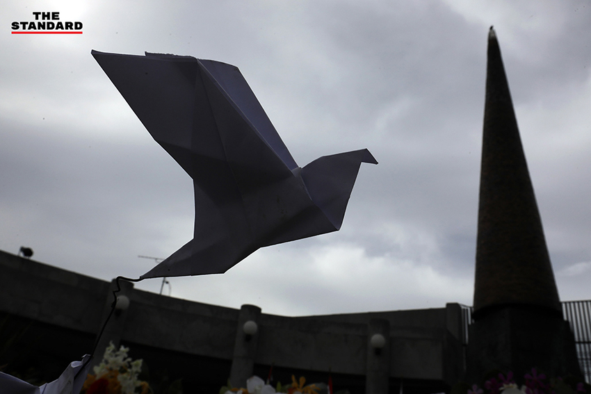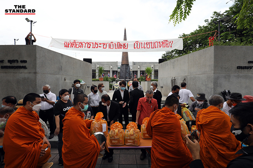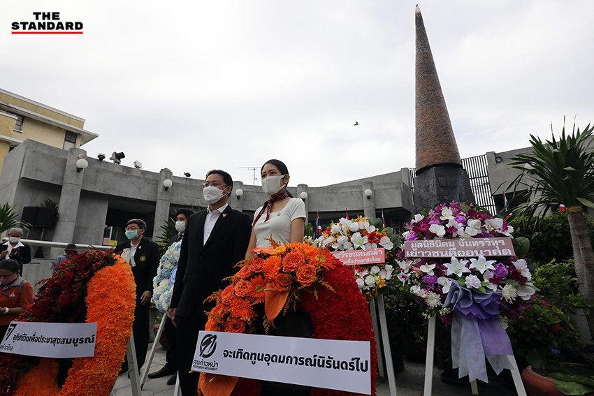 วันนี้ (14 ตุลาคม) ที่อนุสรณ์สถาน 14 ตุลา แยกคอกวัว ถนนราชดำเนิน กรุงเทพมหานคร มีการจัดงานรำลึก 48 ปี เหตุการณ์ประวัติศาสตร์ทางการเมือง ‘14 ตุลา 2516’ ประจำปี 2564 โดยบรรยากาศช่วงเช้ามีพิธีตักบาตรพระสงฆ์จำนวน 14 รูป บริเวณด้านหน้าอนุสรณ์สถานฯ พร้อมจัดพิธีกรรม 3 ศาสนา ได้แก่ ศาสนาพุทธ คริสต์ และอิสลาม