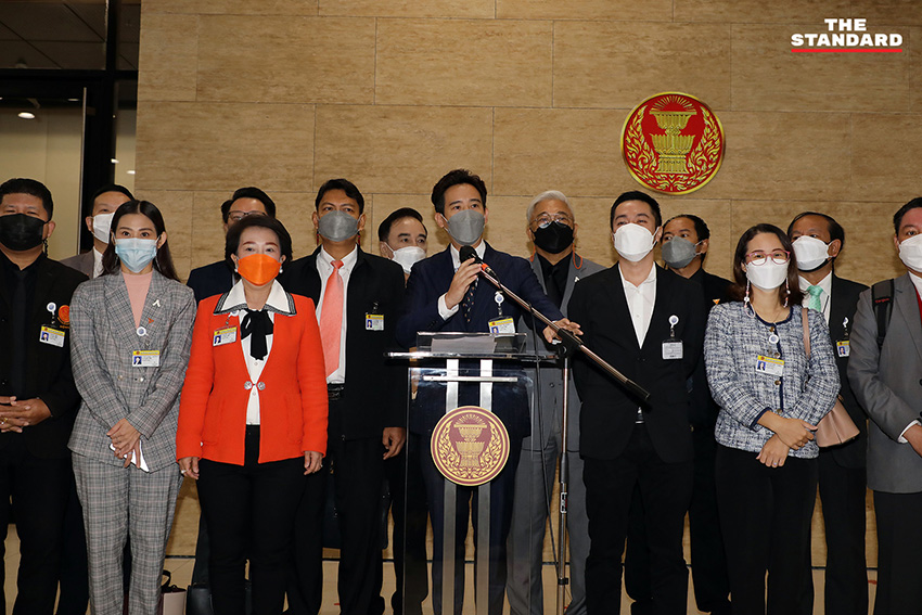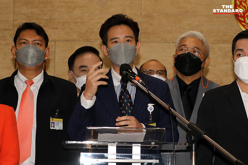 วันนี้ (10 กันยายน) ที่อาคารรัฐสภา พิธา ลิ้มเจริญรัตน์ สมาชิกสภาผู้แทนราษฎร (ส.ส.) แบบบัญชีรายชื่อ ในฐานะหัวหน้าพรรคก้าวไกล พร้อมด้วย ส.ส. พรรคก้าวไกล แถลงจุดยืนของพรรคก้าวไกลต่อการพิจารณาร่างแก้ไขเพิ่มเติมรัฐธรรมนูญในวาระที่ 3