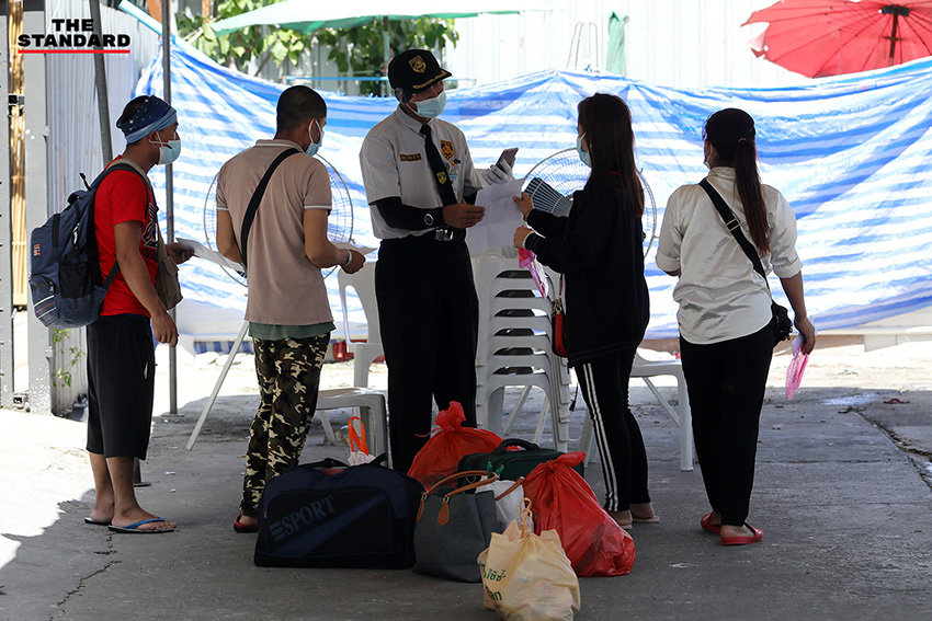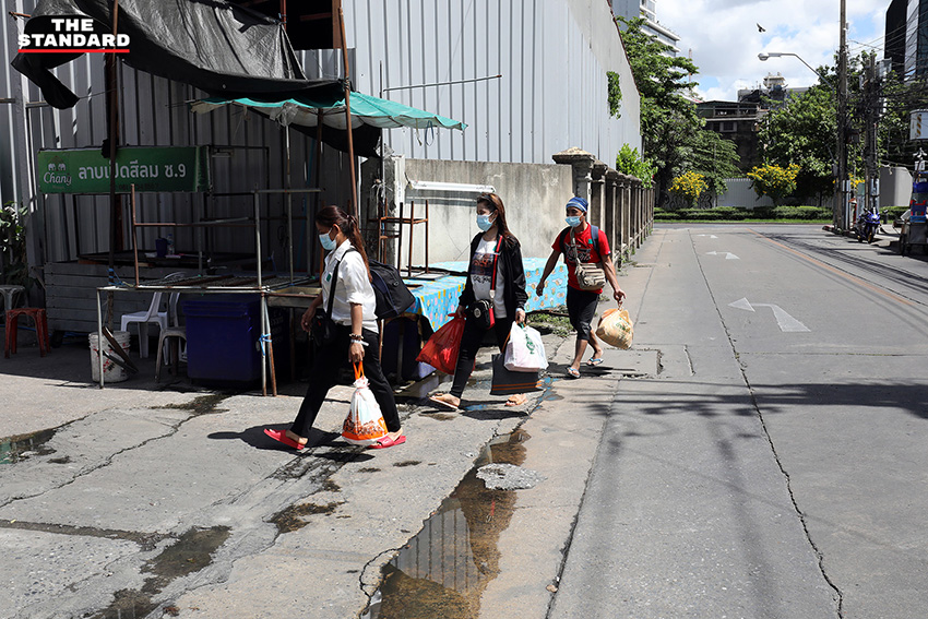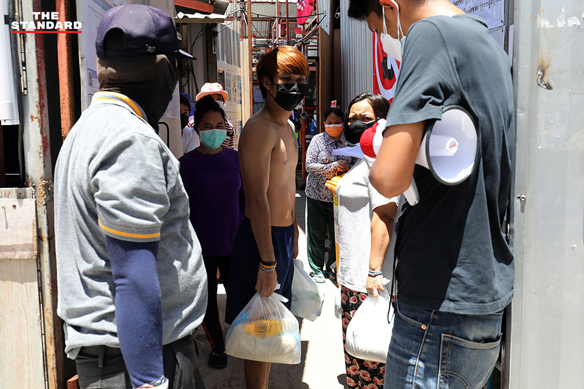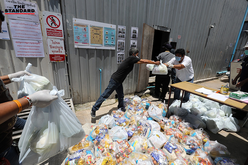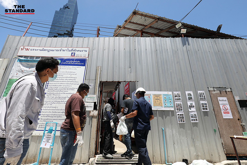 วันนี้ (27 มิถุนายน) แคมป์คนงานก่อสร้างที่ซอยสีลม นำอาหารมาให้คนงาน หลัง ศบค. มีคำสั่งปิดแคมป์คนงานก่อสร้างในพื้นที่กรุงเทพมหานครและปริมณฑล รวมถึง 4 จังหวัดชายแดนภาคใต้ ได้แก่ ยะลา ปัตตานี นราธิวาส และสงขลา เป็นเวลา 1 เดือน เพื่อป้องกันการแพร่ระบาดของโควิด-19