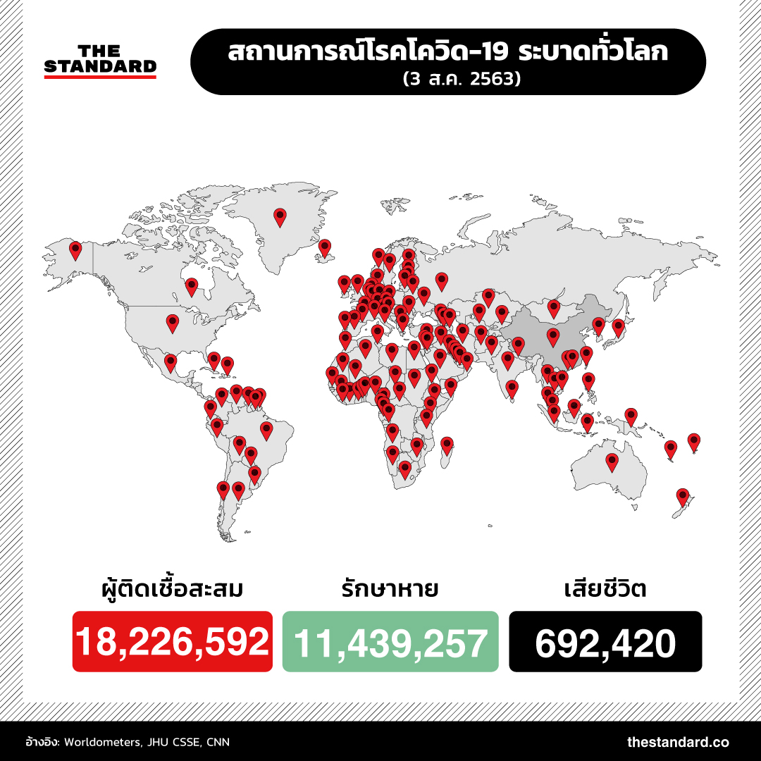 สถานการณ์โรคโควิด-19 ระบาดทั่วโลก (3 ส.ค. 2563)