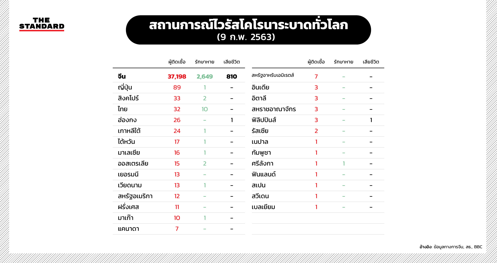 ยอดผู้เสียชีวิตจากไวรัสโคโรนาสายพันธุ์ใหม่ 2019-nCoV ในจีนพุ่งสูงขึ้นเป็น 810 รายแล้ว ซึ่งแซงหน้ายอดเสียชีวิตจากโรคซาร์สเมื่อปี 2003 (774 ราย) และมีแนวโน้มเพิ่มสูงขึ้นเรื่อยๆ เช่นเดียวกับจำนวนผู้ติดเชื้อทั้งในประเทศจีนและในต่างประเทศที่เพิ่มมากขึ้นอย่างต่อเนื่อง สถานการณ์การระบาดล่าสุดเป็นอย่างไร