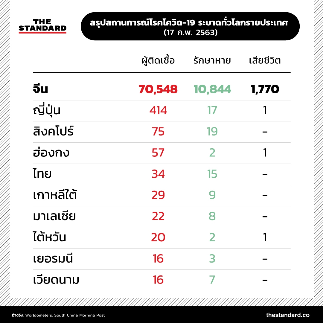 ยอดผู้เสียชีวิตจากโรคโควิด-19 (ไวรัสโคโรนาสายพันธุ์ใหม่) พุ่งสูงขึ้นเป็น 1,770 รายแล้ว ซึ่งมากกว่ายอดผู้เสียชีวิตจากโรคซาร์สเมื่อปี 2003 (774 ราย) และโรคเมอร์สเมื่อปี 2012 (858 ราย) รวมกัน ขณะที่จำนวนผู้ติดเชื้อทั้งในประเทศจีนและในต่างประเทศยังเพิ่มสูงขึ้นอย่างต่อเนื่อง ภาพรวมสถานการณ์การระบาดล่าสุดเป็นอย่างไร