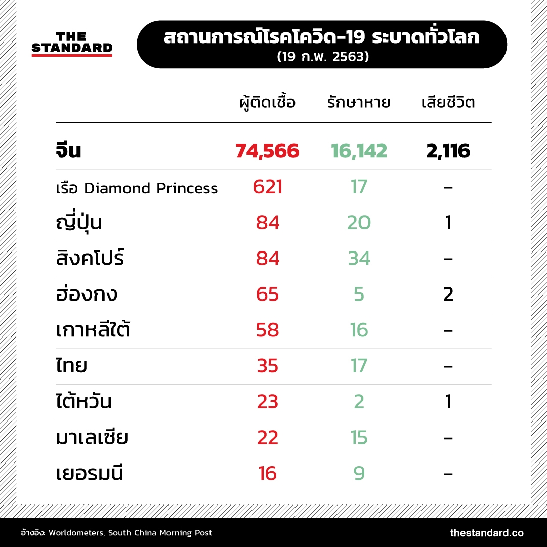 ยอดผู้เสียชีวิตจากโรคโควิด-19 (โรคติดเชื้อไวรัสโคโรนาสายพันธุ์ใหม่ 2019) ทั่วโลกเพิ่มสูงกว่า 2,100 ราย ขณะที่จำนวนผู้ติดเชื้อพุ่งสูงกว่า 75,600 รายแล้ว ภาพรวมสถานการณ์การระบาดล่าสุดเป็นอย่างไร
