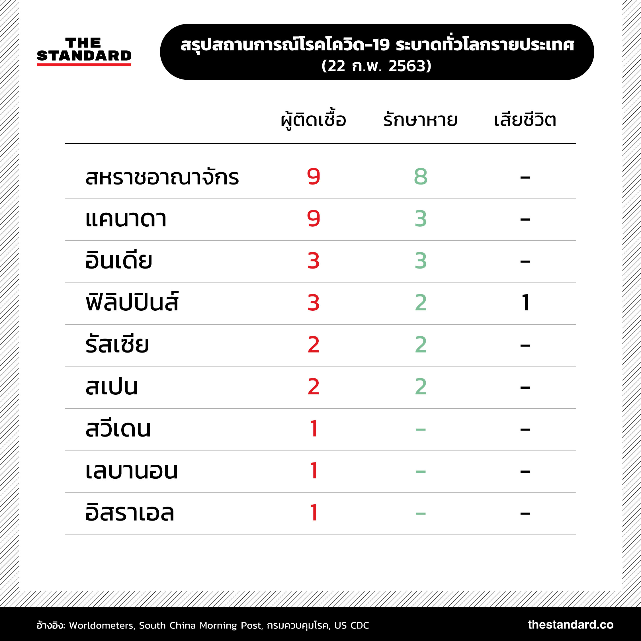 สรุปสถานการณ์โรคโควิด-19 ระบาดทั่วโลก (22 ก.พ. 2563)
