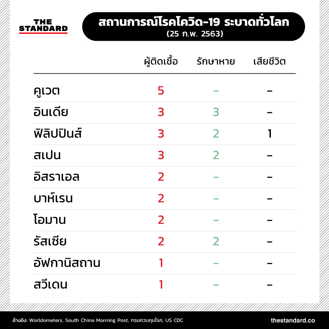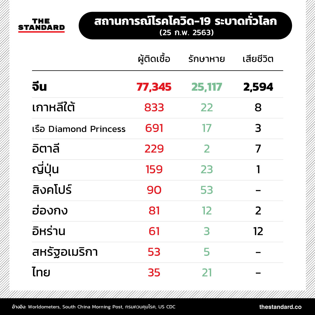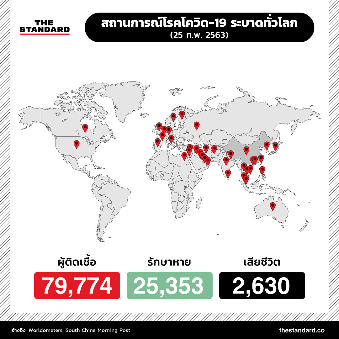 ยอดผู้เสียชีวิตจากโรคโควิด-19 (โรคติดเชื้อไวรัสโคโรนา 2019) ทั่วโลกเพิ่มสูงกว่า 2,600 ราย ขณะที่จำนวนผู้ติดเชื้อพุ่งสูงเกือบ 79,800 รายแล้ว ภาพรวมสถานการณ์การระบาดล่าสุดเป็นอย่างไร