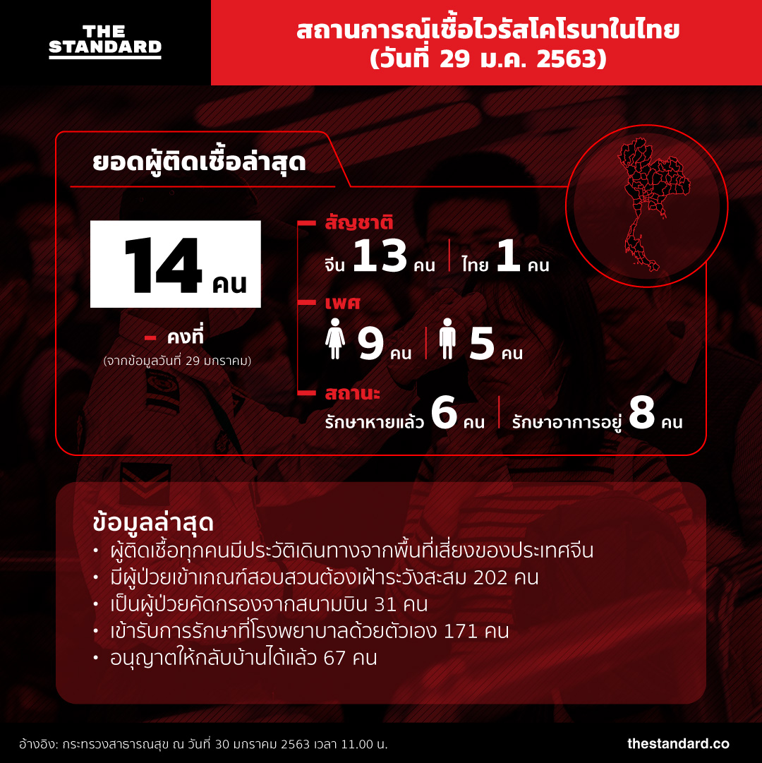 สถานการณ์การเฝ้าระวังผู้ติดเชื้อไวรัสโคโรนาสายพันธุ์ใหม่ยังคงเป็นเรื่องที่หลายหน่วยงานเฝ้าติดตาม รวมถึงออกประกาศมาตรการป้องกันในทุกช่องทางอย่างเข้มงวด THE STANDARD ได้รวบรวมจำนวนตัวเลขของผู้ติดเชื้อที่พบในไทยล่าสุดมาให้ดูกันว่าตอนนี้สถานการณ์ ณ ปัจจุบันเป็นอย่างไรบ้าง