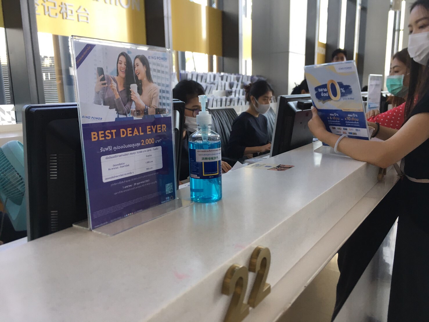 - มาตรการป้องกันและเฝ้าระวังสุขอนามัยของลูกค้าและพนักงาน โดยให้พนักงานปฏิบัติงานหน้าร้านให้สวมหน้ากากอนามัย N95 พร้อมเพิ่มจุดให้บริการเจลล้างมือสำหรับลูกค้า พร้อมการเช็ดทำความสะอาดซ้ำด้วยน้ำยาฆ่าเชื้อในจุดสัมผัสสาธารณะ