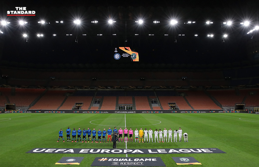 บรรยากาศที่ว่างเปล่าก่อนเกมระหว่างอินเตอร์ มิลานและลูโดโกเรต์ส รัซกราด ในการแข่งขันแบบปิด ไม่ให้แฟนบอลเข้าชมการแข่งขันศึกยูโรปาลีก รอบ 32 ทีมสุดท้าย เลกที่ 2 ที่สนามจูเซ็ปเป เมอัซซา เมื่อวันที่ 27 กุมภาพันธ์ 2020
