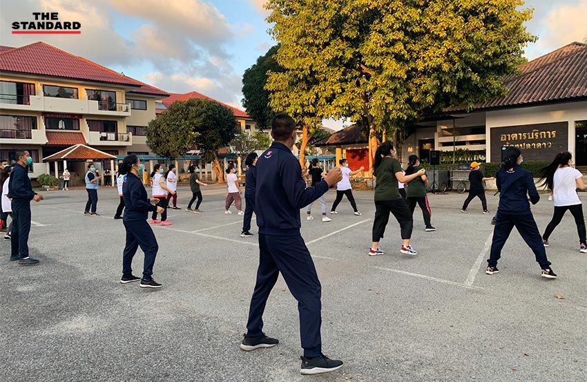 ช่วงเย็นๆ ณ อาคารรับรองสัตหีบ พี่น้องคนไทยกลับบ้านจากอู่ฮั่นจะมารวมตัวกันออกกำลังกาย เช่น แบดมินตัน และเต้นแอโรบิก โดยทีมแพทย์และเจ้าหน้าที่จากสาธารณสุขรวมทั้งจากกองทัพเรือจะร่วมออกกำลังกายด้วยกัน สร้างความสนุกสนานและเป็นการผ่อนคลายไปในตัว สำหรับผู้ที่ไม่ได้ออกกำลังกายก็จะมาเดินเล่นเปลี่ยนอิริยาบถกัน รวมถึงพบปะพูดคุยกัน