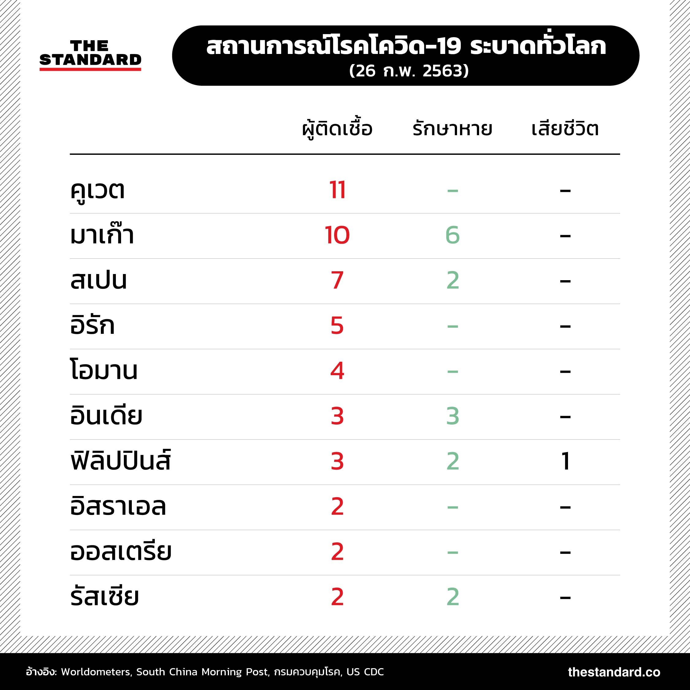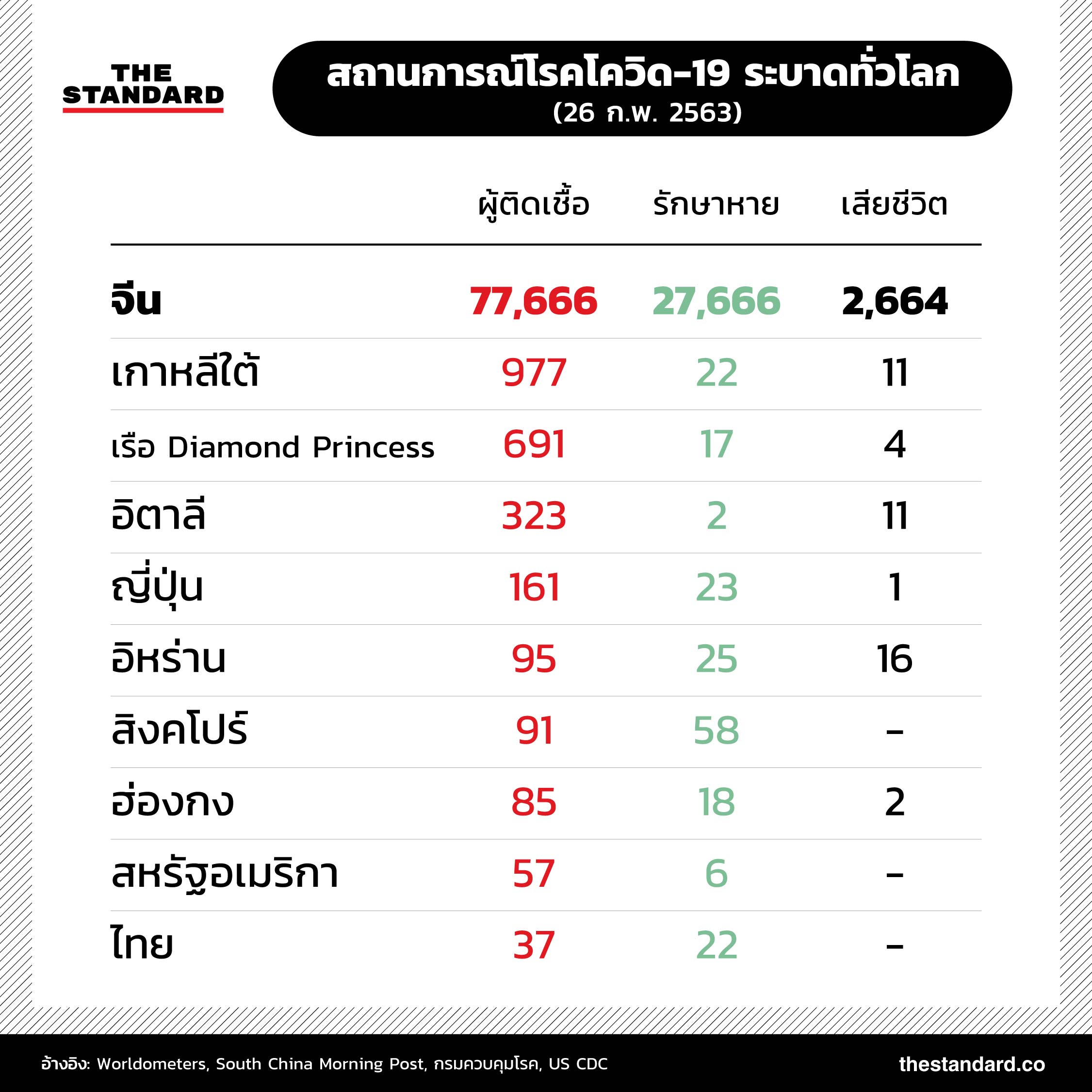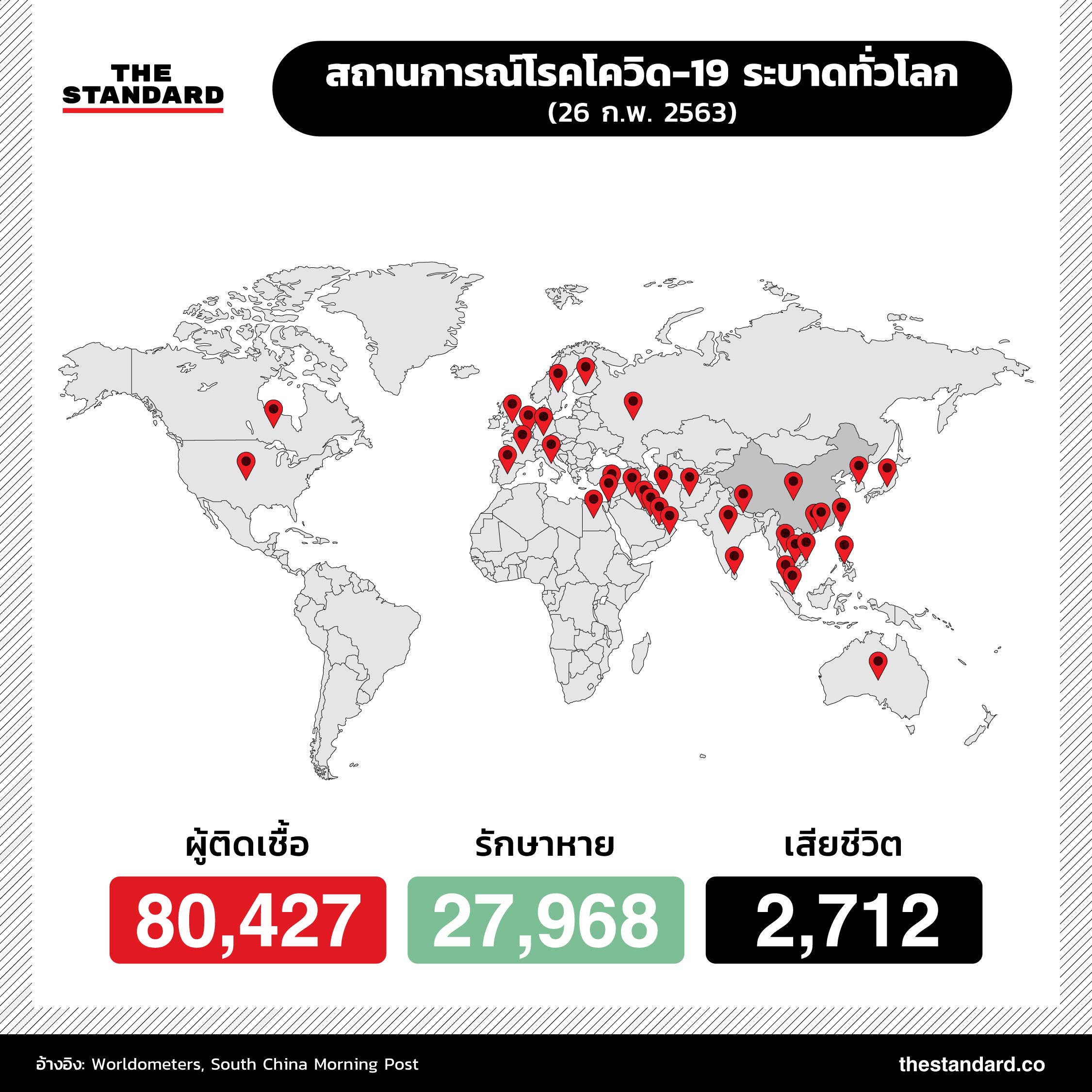 ยอดผู้เสียชีวิตจากโรคโควิด-19 (โรคติดเชื้อไวรัสโคโรนาสายพันธุ์ใหม่ 2019) ทั่วโลกเพิ่มสูงกว่า 2,700 ราย ขณะที่จำนวนผู้ติดเชื้อพุ่งสูงเกิน 80,000 รายแล้ว ภาพรวมสถานการณ์การระบาดล่าสุดเป็นอย่างไร