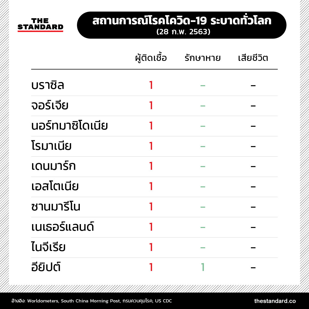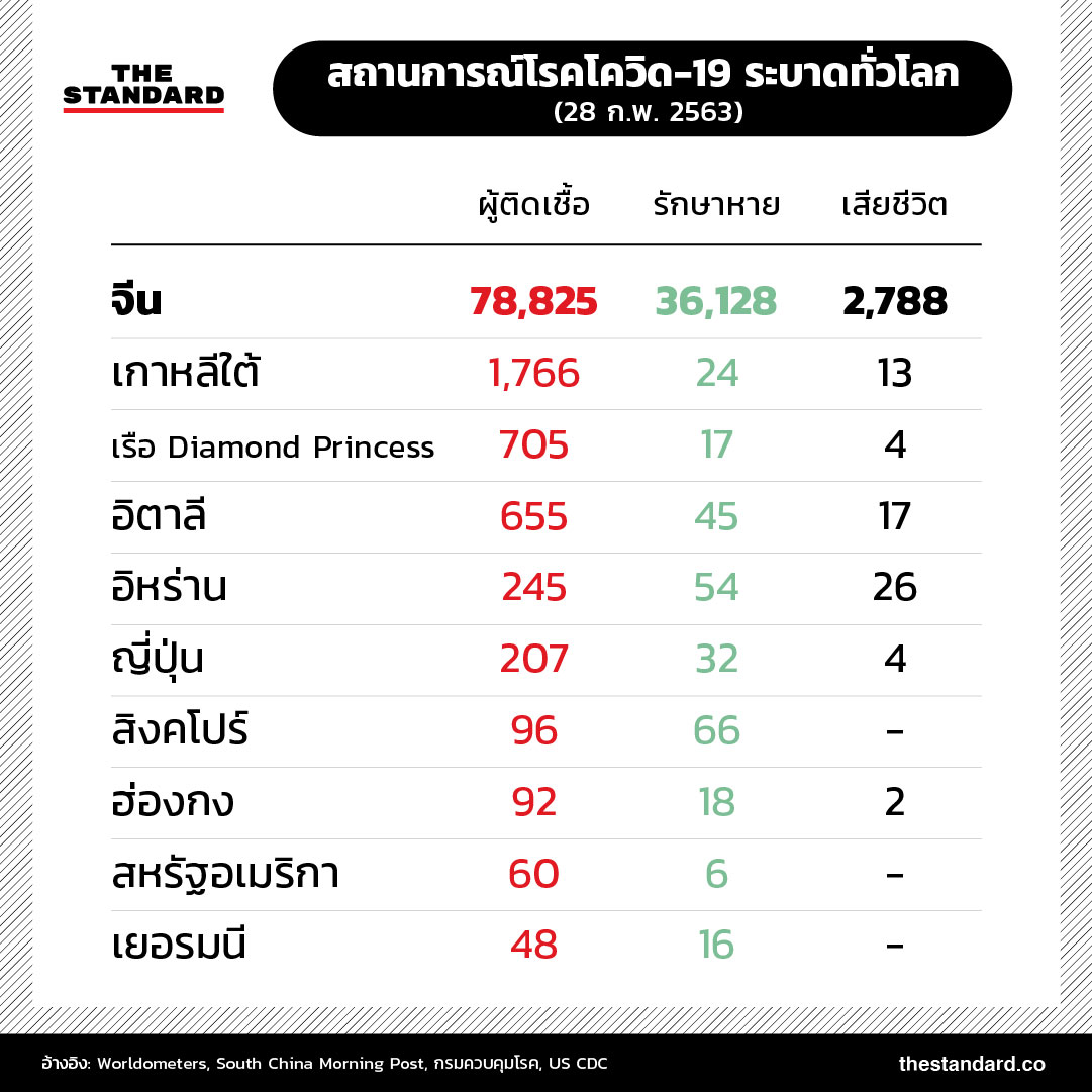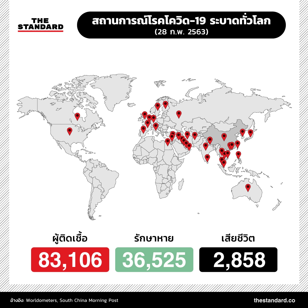 ยอดผู้เสียชีวิตจากโรคโควิด-19 (โรคติดเชื้อไวรัสโคโรนาสายพันธุ์ใหม่ 2019) ทั่วโลกเพิ่มสูงกว่า 2,800 ราย ขณะที่จำนวนผู้ติดเชื้อพุ่งสูงเกิน 83,000 รายแล้ว ภาพรวมสถานการณ์การระบาดล่าสุดเป็นอย่างไร