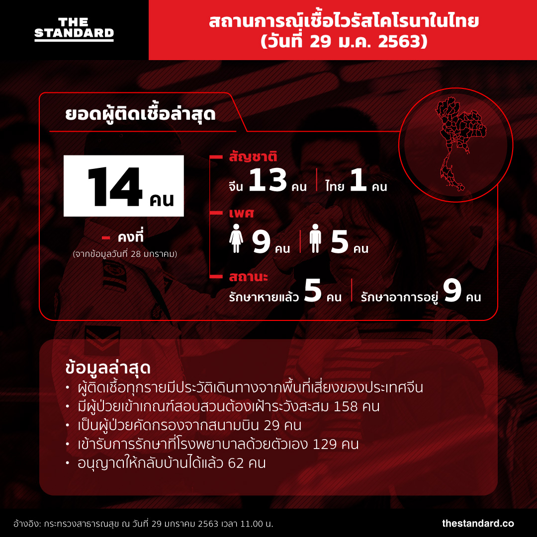 สถานการณ์การเฝ้าระวังผู้ติดเชื้อไวรัสโคโรนาสายพันธุ์ใหม่ยังคงเป็นสิ่งที่หลายหน่วยงานเฝ้าติดตาม รวมถึงออกประกาศมาตรการป้องกันในทุกช่องอย่างเข้มงวด THE STANDARD ได้รวบรวมจำนวนตัวเลขของผู้ติดเชื้อที่พบในไทยล่าสุดมาให้ดูกันว่าตอนนี้สถานการณ์ ณ ปัจจุบันเป็นอย่างไรบ้าง