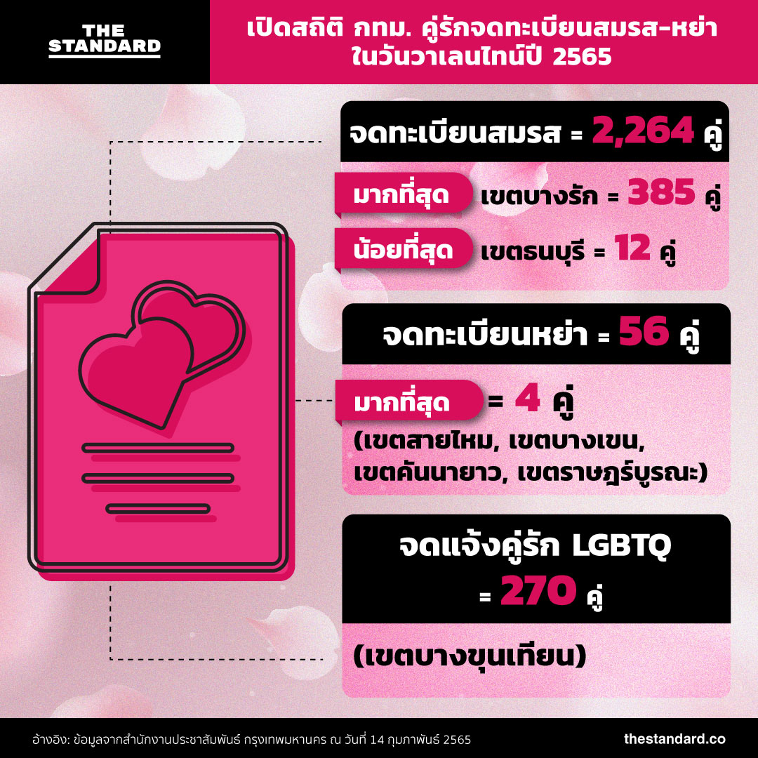 และนี่คือสถิติการจดทะเบียนสมรสและจดทะเบียนหย่าของ กทม. หลังหมดเวลาราชการในวันวาเลนไทน์ปี 2565