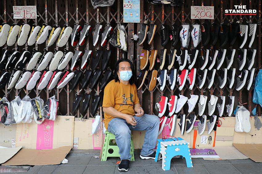 พ่อค้ารองเท้ามือสองย่านคลองถมกล่าวว่า เงียบ ไม่มีคนเดิน การค้าขายจะแย่อยู่แล้ว วันนี้เพิ่งขายได้ 3 คู่ การเดินทางมาขายแทบจะไม่คุ้มค่ากับการขายเลย เนื่องจากต้องจ่ายค่าที่จอดรถ ค่าเดินทาง และค่ากิน แต่ก็ต้องทำ