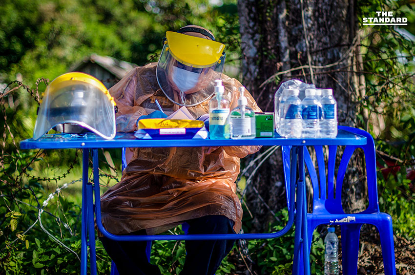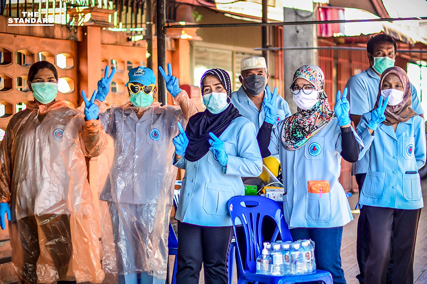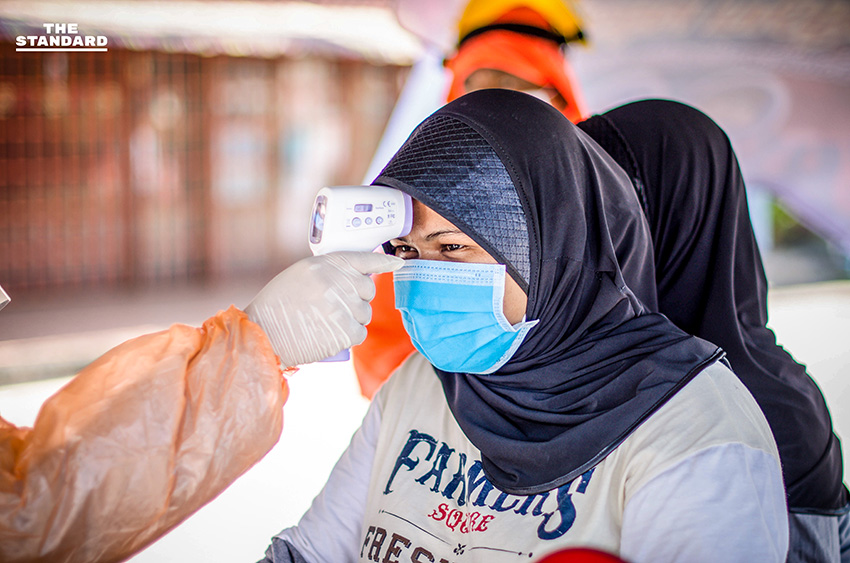 วันนี้ (5 เมษายน) นี่คือบรรยากาศด่านตรวจสกัดการระบาดของโรคโควิด-19 ในหมู่บ้านแห่งหนึ่งของอำเภอสุไหงโก-ลก จังหวัดนราธิวาส ซึ่งมีการสกัดเข้ม ตรวจอุณหภูมิร่างกาย และหากมีอุณหภูมิเกินเกณฑ์ก็จะมีที่ให้พักเพื่อตรวจซ้ำอย่างละเอียด อีกทั้งยังมีข้อบังคับให้สวมหน้ากากอนามัยก่อนเข้าหมู่บ้าน