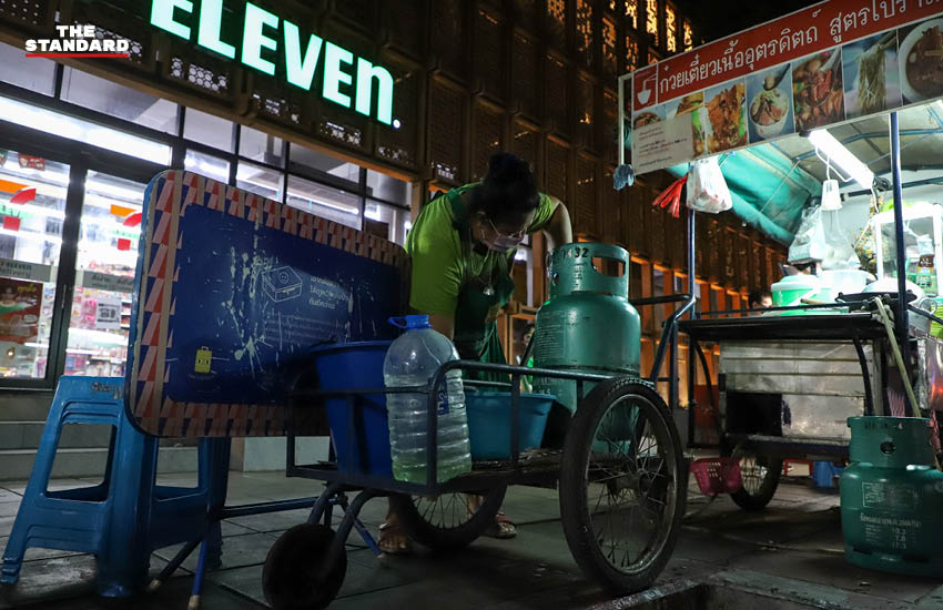 แม่ค้าร้านก๋วยเตี๋ยวย่านประดิพัทธ์กำลังเก็บกวาดร้าน ก่อนเวลา 21.00 น.