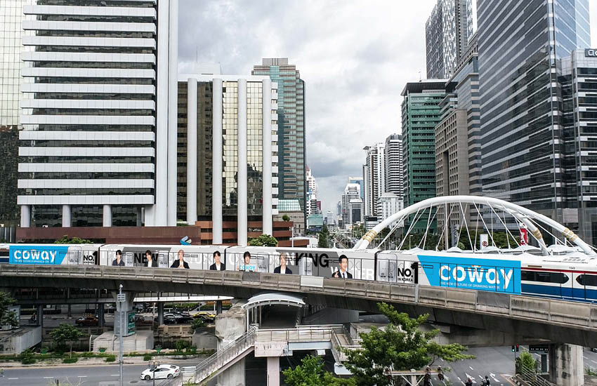 หลังการเปิดตัว BTS ในบทบาทของแบรนด์แบรนด์แอมบาสเดอร์ระดับโลกที่เกาหลี คงไม่ต้องเดาว่าจะได้ผลตอบรับดีขนาดไหน ส่วนในประเทศไทยแคมเปญ Coway x BTS เจาะกลุ่มคนรุ่นใหม่ผ่านสื่อโฆษณากลางแจ้ง หรือ Out of Home ตั้งแต่การ Wrap รถไฟฟ้าบีทีเอส และจุดต่างๆ ภายในสถานี รวมถึงจอ LED หน้า Siam Paragon, centralwOrld รวมถึงบิลบอร์ดบริเวณทางด่วนและจุดต่างๆ ทั่วกรุงเทพมหานคร