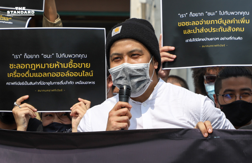 ตัวแทนสมาคมคราฟท์เบียร์อ่านแถลงการณ์ระบุว่า เนื่องด้วยคำสั่งของ ศบค. อนุญาตให้ลูกค้าสามารถรับประทานอาหารภายในร้านได้ถึงเวลา 21.00 น. และไม่อนุญาตให้ขายเครื่องดื่มแอลกอฮอล์เพื่อบริโภคในร้าน ได้ส่งผลกระทบอย่างรุนแรงต่อธุรกิจร้านอาหารและร้านคราฟท์เบียร์ทั้งประเทศ