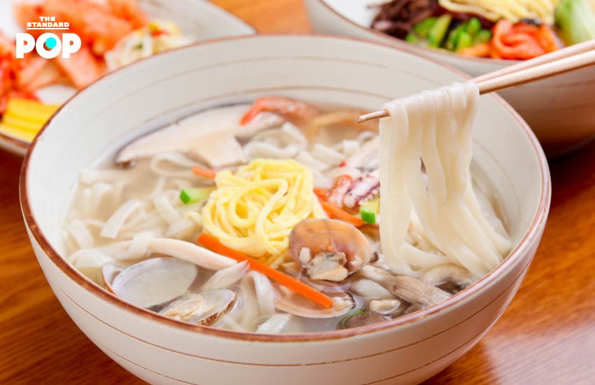 เมนูแรกที่เราเห็นในซีรีส์เรื่องนี้คือ ‘คัลกุกซู’ หรือก๋วยเตี๋ยวเกาหลี ที่ผู้กองของเราลงมือทำเองตั้งแต่เส้นเลยทีเดียว คัลกุกซูคือก๋วยเตี๋ยวแบบเกาหลีที่ทำมาจากแป้งสาลี ใส่ผัก เนื้อสัตว์ หรืออาจประยุกต์ใส่อาหารอื่นๆ ลงไป อย่างมันดูหรือซุนแด ก็จะได้รสชาติไปอีกแบบหนึ่ง คัลกุกซูมีความพิเศษตรงเส้นที่เป็นเส้นสด นิยมกินกันในงานฉลองต่างๆ หรือมื้อเบาๆ ในวันสบายๆ