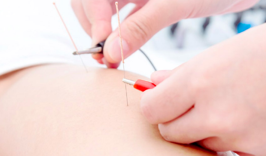 คือการที่แพทย์ใช้เข็มขนาดเล็กปักลงในจุดต่างๆ ของร่างกาย แล้วกระตุ้นโดยใช้นิ้วมือหมุนปั่น หรือใช้เครื่องกระตุ้นไฟฟ้า ใช้เวลาประมาณ 20-30 นาที เพื่อแก้ไขการไหลเวียนของเลือดลมปราณที่ติดขัด ปรับอวัยวะต่างๆ ในร่างกายให้สมดุล กระตุ้นภูมิคุ้มกันในร่างกาย สรรพคุณของการฝังเข็ม สามารถรักษาอาการปวดหลัง, ปวดศีรษะ, มือเท้าชา, อัมพฤกษ์, อัมพาต, นอนไม่หลับ, เครียดไมเกรน, วิตกกังวล, ปวดเมื่อยกล้ามเนื้อ, โรคกล้ามเนื้อเอ็น ข้อกระดูก และปลายประสาทชา, ปวดข้อรูมาตอยด์, ตะคริว, ชาปลายมือปลายเท้า, ข้อเข่าเสื่อม, อาการปวดต่างๆ รวมถึงโรคฮิตอย่างออฟฟิศซินโดรมด้วย