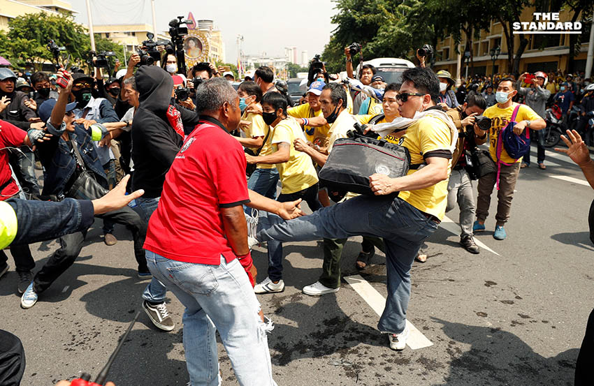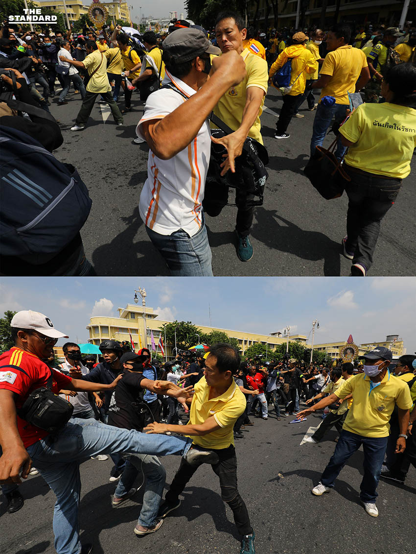 เมื่อเวลา 13.00 น. มีรายงานระบุว่า ขณะที่กลุ่มมวลชนคณะราษฎรเคลื่อนพลบุกยึดพื้นที่ภายในอนุสาวรีย์ประชาธิปไตย เพื่อลำเลียงต้นไม้ออกจากพื้นที่ โดยในระหว่างที่ยื้อยุดกับเจ้าหน้าที่ที่ทำการขวางกั้นอยู่ พบเหตุชุลมุนขึ้นครั้งใหญ่ในรอบวัน เมื่อกลุ่มมวลชนเสื้อเหลืองพยายามกระชับวงล้อมเข้ามาก่อกวน กระทั่งเจ้าหน้าที่ตำรวจต้องเข้ามาควบคุมดูแลความสงบเรียบร้อย และพยายามประชาสัมพันธ์ให้ทุกฝ่ายอยู่ในความสงบก่อนที่ทั้งสองฝ่ายยอมถอยและยุติการปะทะในเวลาต่อมา