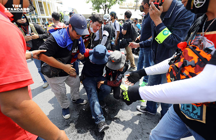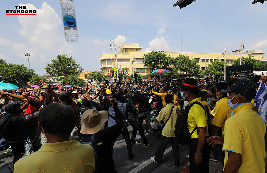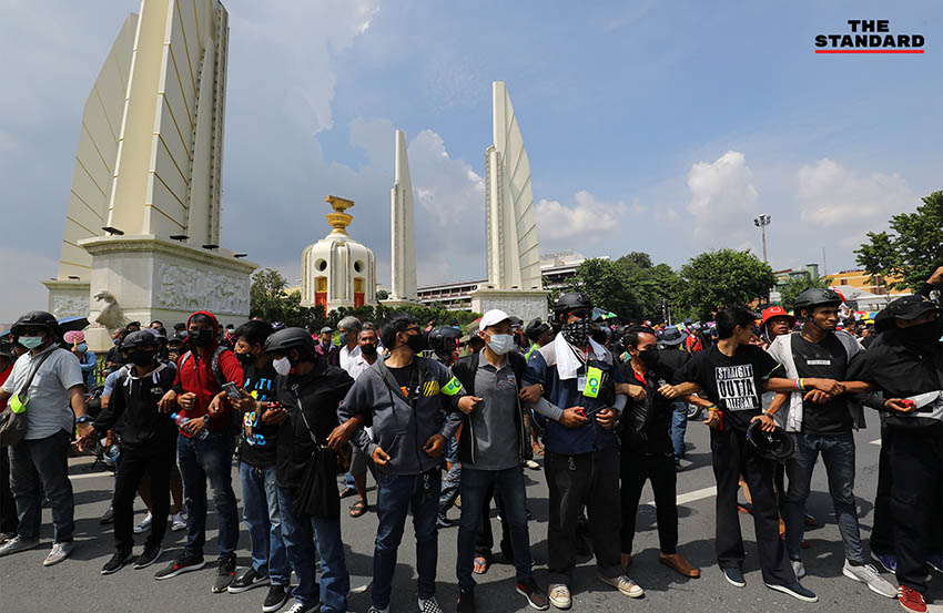 ทั้งนี้ในเวลา 13.50 น. ทีมข่าว THE STANDARD รายงานเพิ่มเติมว่า กลุ่มมวลชนคณะราษฎรได้ทำการบุกยึดพื้นที่อนุสาวรีย์ประชาธิปไตยได้สำเร็จ