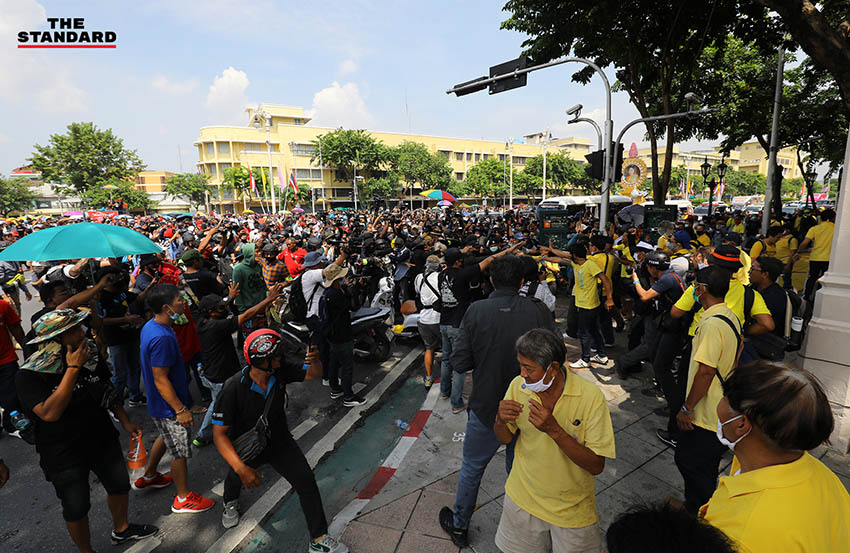 วันนี้ (14 ตุลาคม) ท่ามกลางบรรยากาศการชุมนุมของกลุ่มคณะราษฎรและมวลชนสวมเสื้อเหลืองที่เข้าร่วมกิจกรรมรอรับเสด็จฯ ในวันนี้