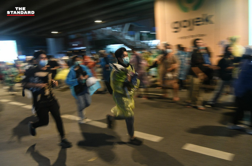 การ์ดอาสาสมัครของผู้ชุมนุมตั้งแถวเป็นแนวกั้นบริเวณถนนพญาไท อนุสาวรีย์ชัยสมรภูมิ เพื่อป้องกันหากมีเหตุการณ์สลายการชุมนุม โดยนำร่มจำนวนมากมาตั้งเป็นแนวกั้น และสวมใส่อุปกรณ์ป้องกันตัว TAGS: การชุมนุมทางการเมืองอนุสาวรีย์ชัยสมรภูมิการชุมนุม 18 ตุลา LOADING... ABOUT THE AUTHOR THE STANDARD TEAM กองบรรณาธิการ THE STANDARD
