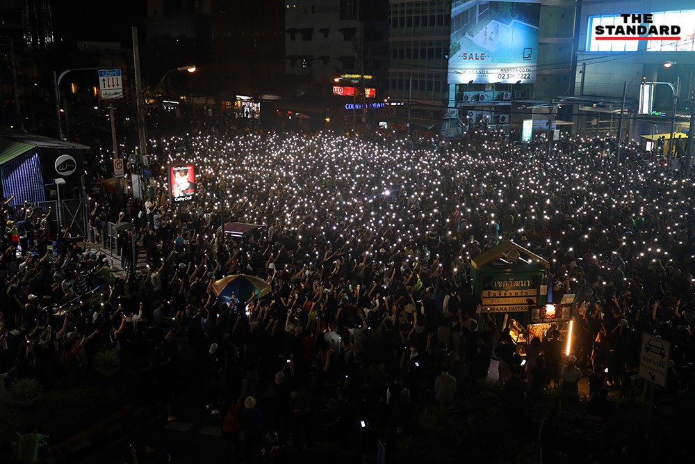 เมื่อเวลาประมาณ 19.42 น. ผู้ชุมนุมได้ร่วมกันร้องเพลง ‘เพื่อมวลชน’ พร้อมเปิดแฟลชมือถือโบกไปมา ที่บริเวณแยกอโศกมนตรี ก่อนที่จะมีการประกาศยุติการชุมนุมและขอให้ผู้ชุมนุมแยกย้ายกันกลับบ้าน โดยขอไม่ให้มีกลุ่มตกค้างอยู่ต่อ ขณะที่บริเวณผิวการจราจรมีอาสาสมัครกลุ่มผู้ชุมนุมช่วยกันเก็บขยะ ก่อนที่จะเปิดการจราจรให้รถได้สัญจรตามปกติ