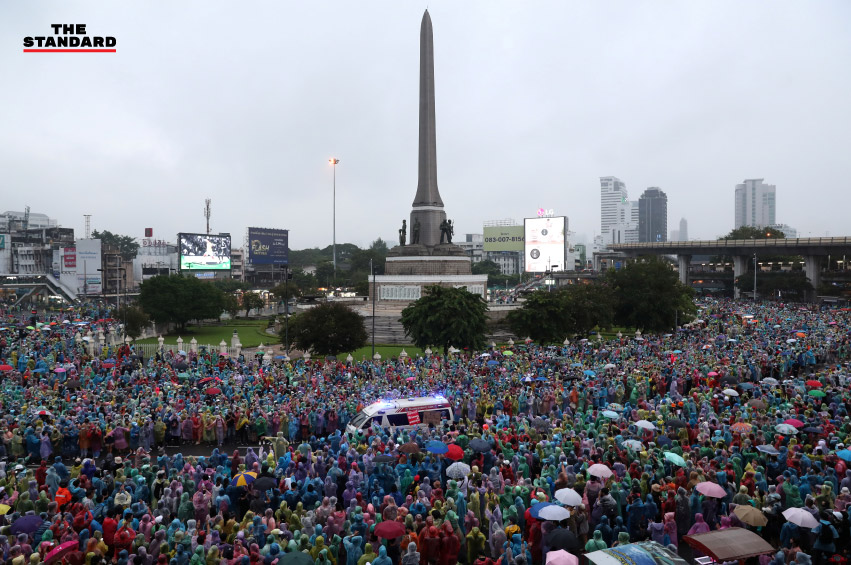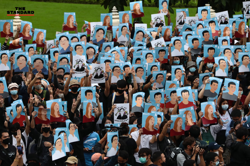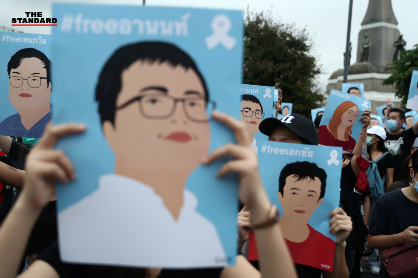 วันนี้ (18 ตุลาคม) เมื่อเวลาประมาณ 16.10 น. ระหว่างที่มวลชนทยอยเดินเท้าเข้าร่วมชุมนุม #18ตุลาไปอนุสาวรีย์ชัย บริเวณถนนอนุสาวรีย์ชัย มีรายงานพบกลุ่มผู้ชุมนุมที่เดินทางไปถึงก่อน ได้ทำการชูรูปของเหล่าแกนนำที่ถูกจับกุมไปดำเนินคดี จากการจัดชุมนุมตามจุดต่างๆ ตลอดหลายวันที่ผ่านมา พร้อมร่วมส่งเสียงตะโกนควบคู่ว่า ‘ปล่อยเพื่อนเรา’ เพื่อเรียกร้องให้เจ้าหน้าที่ของรัฐปล่อยตัวแกนนำชุมนุมที่ถูกจับกุมไปดำเนินคดีทั้งหมด