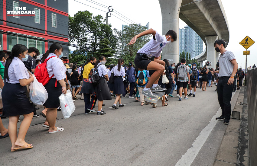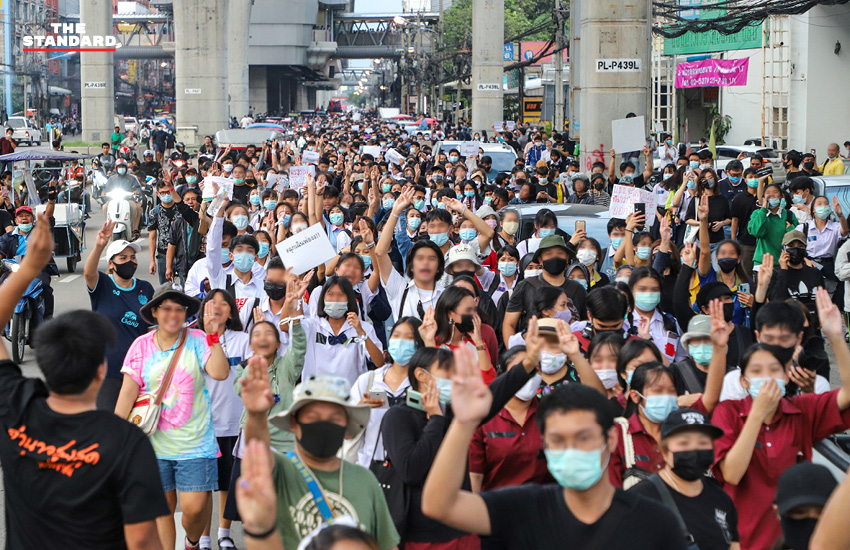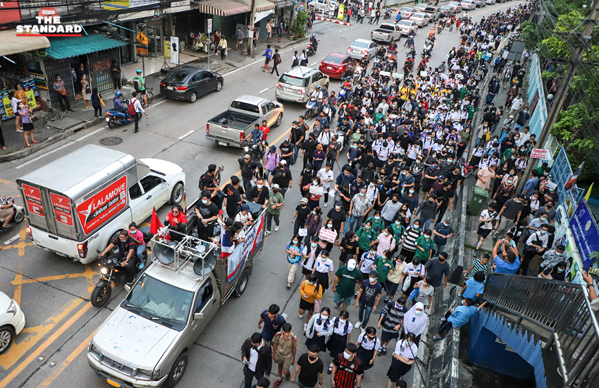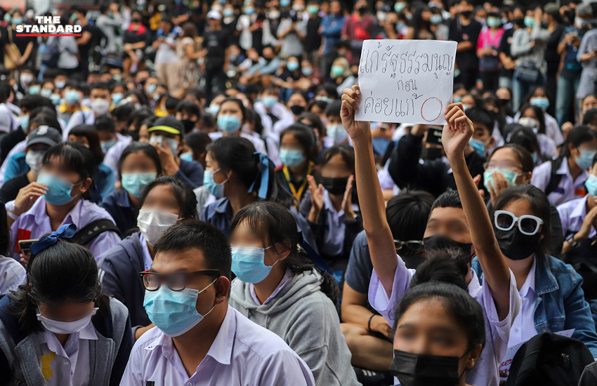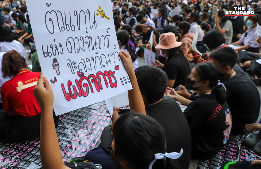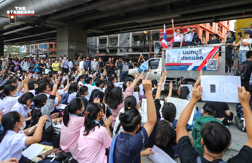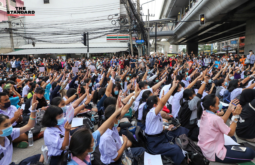 ที่นี่มวลชนที่มาปักหลักก่อนใครคือนักเรียนชั้นมัธยมฯ ที่มาชุมนุมหลังเลิกเรียนพร้อมเครื่องแบบนักเรียน ป้ายข้อความต่อต้านรัฐบาล และข้อความเสียดสีประชดประชันความเหลื่อมล้ำในสังคม