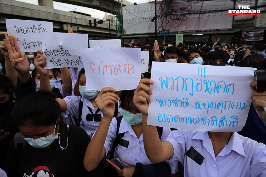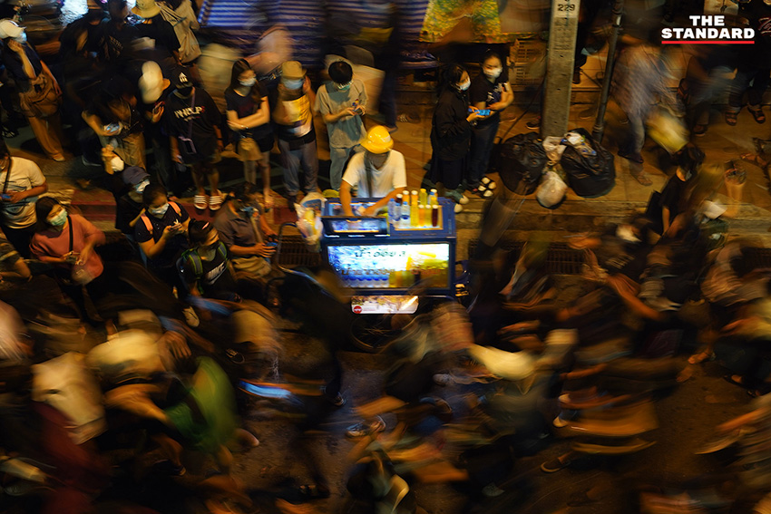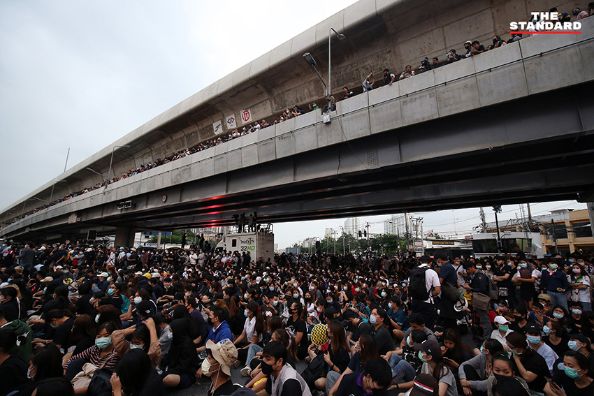 เมื่อยึดจุดยุทธศาสตร์ได้แล้ว มวลชนได้เริ่มล้อมวงปราศรัย โดยมี จ่านิว-สิรวิชญ์ เสรีธิวัฒน์ อดีตแกนนำกลุ่มคนอยากเลือกตั้ง เป็นผู้เปิดปราศรัยที่บริเวณแยกเกษตร และพูดเน้นย้ำเรื่องการหยุดคุกคามประชาชน ก่อนที่จะหมุนเวียนให้ผู้ร่วมชุมนุมคนอื่นๆ ได้ปราศรัย สลับกับการตะโกนขับไล่รัฐบาลเป็นระยะ