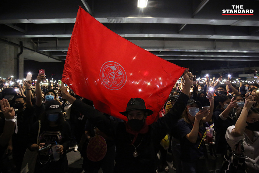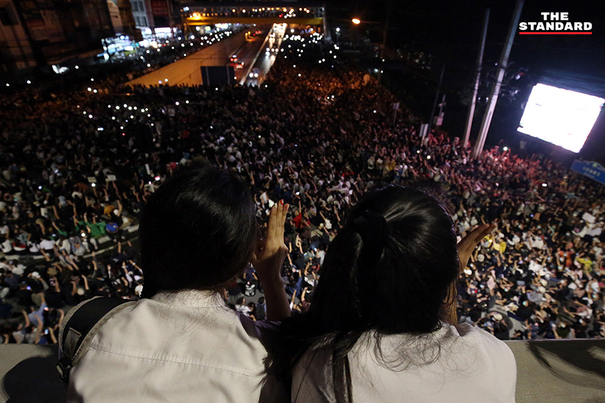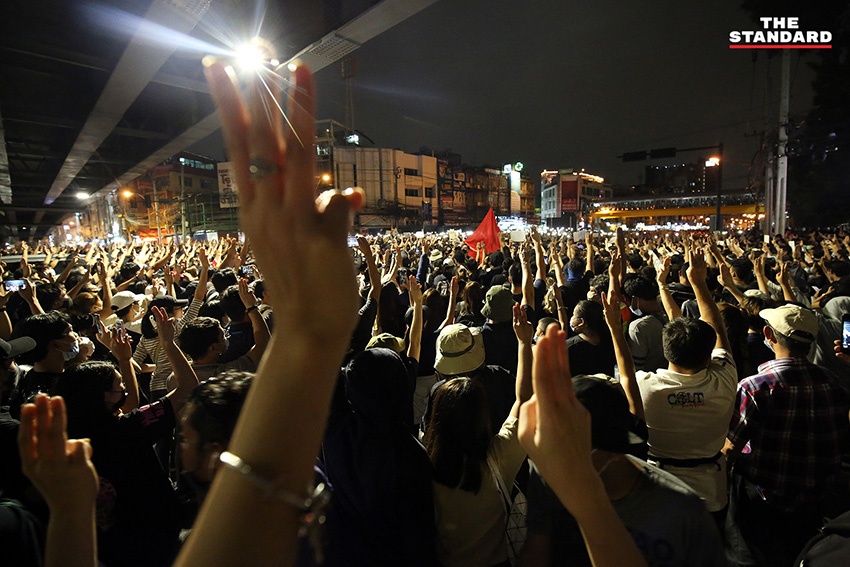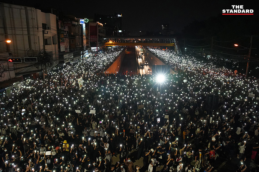 มวลชนรวมตัวชุมนุมแยกเกษตร แสงแฟลชเต็มท้องถนน