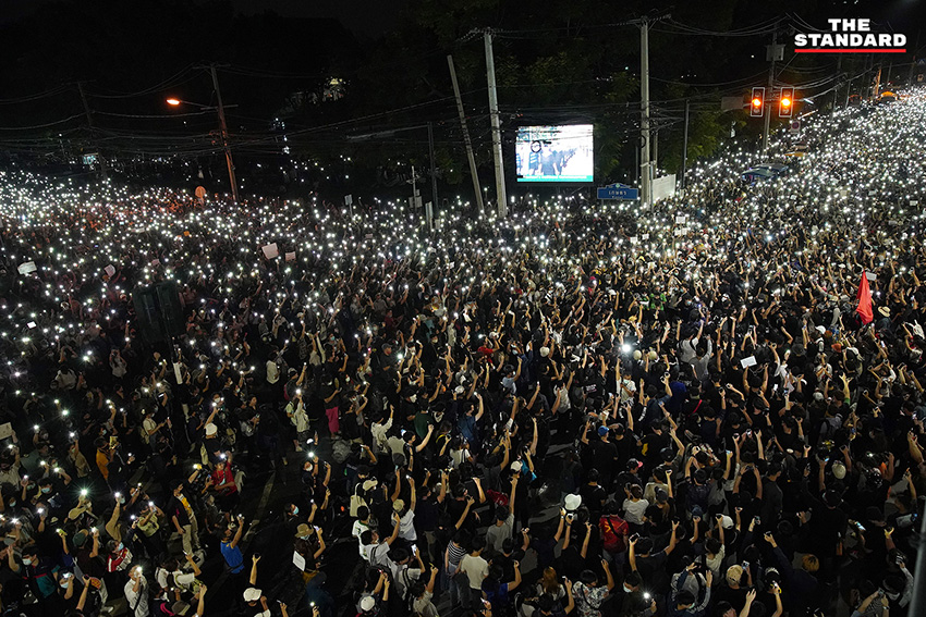 จากนั้นมวลชนแยกเกษตรได้รวมตัวบนพื้นผิวถนนบริเวณหน้ามหาวิทยาลัยเกษตรศาสตร์เต็มพื้นที่ และดำเนินกิจกรรมปราศรัยต่อไป พร้อมเชิญชวนผู้ชุมนุมร่วมกันเปิดแฟลช และชูสามนิ้ว พร้อมตะโกน “ปล่อยเพื่อนเรา” และ “ประชาชนจงเจริญ” ก่อนจะประกาศยุติการชุมนุมให้ทุกคนแยกย้ายกลับบ้านในเวลา 19.00 น.