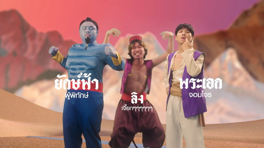 ส่วนมิวสิกวิดีโอ พวกเขาได้รับแรงบันดาลใจมาจากนิทานเรื่อง อะลาดินและตะเกียงวิเศษ ที่มาเสริมให้เนื้อหาและดนตรีแบบอาหรับในบทเพลงชัดเจนยิ่งขึ้น และต้องบอกว่า ทีมงานนำเสนอภาพและเรื่องราวออกมาได้อย่างสร้างสรรค์ โดยเฉพาะปอและน้ำวนที่ลงทุนสวมบทบาทเป็นจอมโจรพราวเสน่ห์และยักษ์ฟ้าด้วยตัวเอง เสริมด้วย Valentina Ploy ศิลปินหญิงร่วมค่าย ที่มารับบทเป็นเจ้าหญิงผู้เลอโฉม ที่มาร่วมถ่ายทอดมนต์เสน่ห์ของเธอในครั้งนี้ ซึ่งชวนให้เราสงสัยในความงดงามของเธออย่างที่เนื้อหาของเพลงว่าไว้จริงๆ