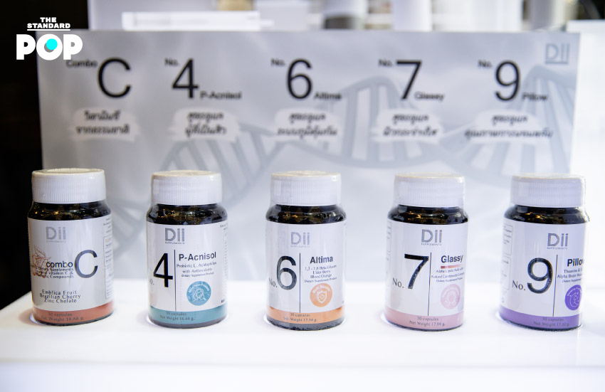 กวินวัชร์: เรามีเป้าหมายว่าอีก 3 ปีอยากให้ Dii Supplements เป็นวิตามินที่มีอยู่ในทุกบ้านครับ เพราะจริงๆ ก่อนเริ่มต้นสร้างแบรนด์มันก็เป็นอย่างที่พี่ตี๋กับพี่ตงบอกเราอย่างหนึ่งว่าทางพี่ๆ เขามีข้อมูลจำนวนมาก เนื่องจากแบรนด์ของพี่ๆ มีการดูแลลูกค้ามาหลายหมื่นคน จากประสบการณ์ 20 ปีที่ผ่านมาทำให้รู้ว่าเมื่อคุณหมอได้คุยกับลูกค้าแต่ละคน รู้ว่าคนไข้แต่ละคนมีปัญหาตรงไหน ควรจะแก้ตรงไหนให้คนไข้เกิดความพึงพอใจที่สุด ดังนั้น Supplement ของเราจึงมีคอนเซปต์ที่ถอดมาจากโปรแกรมทรีตเมนต์ต่างๆ ที่มีอยู่ในคลินิก มาผลิตเป็นวิตามินที่แก้ปัญหาของแต่ละคน ทำให้พวกเขารู้สึกเหมือนมีคุณหมอตามไปดูแลที่บ้าน เราก็เลยเรียกว่า Wellness Kit at Home ถ้าเป็น Kit at Home ก็จะไม่ได้มีแค่วิตามินตัวเดียว เราจะมีการจัดวิตามินหลายชุด เพราะว่าแต่ละคนมีความต้องการที่แตกต่างกัน เช่น ถ้าเขาเป็นสิว แต่สิวที่เป็นเกิดจากพฤติกรรมนอนไม่หลับ เขาก็จะต้องกิน Combo C คู่กับ No.9 นอกจากจะรักษาสิวแล้วยังช่วยแก้พฤติกรรมที่เป็นสาเหตุหลักของการเกิดสิวด้วย ซึ่งตัว No.9 จะช่วยให้เขานอนหลับดีขึ้น หลับสนิทมากขึ้น หรือถ้าบางคนเป็นสิวผดที่เกิดจากการใส่หน้ากากอนามัยในช่วงนี้ก็จะมีตัว No.4 ที่แก้สิว จับคู่กับ No.6 ที่ช่วยเสริมภูมิคุ้มกันและลดผดผื่น ซึ่งชุด Kit at Home ของเราจึงเป็นทั้งการรักษาและป้องกันไปในตัว