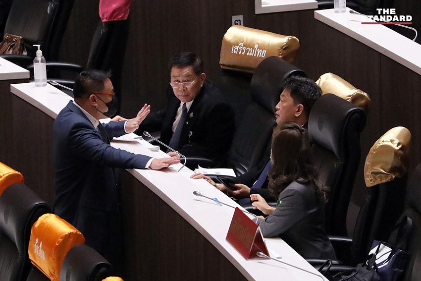 หลังเริ่มการประชุม ปรากฏว่ามี ส.ส. พรรคฝ่ายรัฐบาล ลุกอภิปรายท้วงติงญัตติอภิปรายไม่ไว้วางใจของฝ่ายค้าน ที่มีการพาดพิงถึงสถาบันฯ อาจขัดต่อข้อบังคับ และไม่สมควรอย่างยิ่ง ขณะที่ ชวน หลีกภัย ประธานรัฐสภา ยืนยันว่าได้ตรวจสอบหลายฝ่าย และตามรัฐธรรมนูญ มาตรา 6 ยังไม่พบว่ามีการเข้าข่ายความผิด แต่เป็นการกล่าวหารัฐบาล ที่มีข้อความรุนแรง