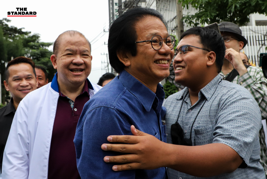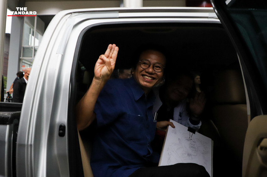 โดย นพ.ทศพร กล่าวว่า ตนเดินทางมาแสดงตัวกับตำรวจด้วยตัวเอง ไม่ต้องมาจับ ตอนนี้ไม่ได้คาดหวังจะได้ประกันตัวหรือไม่ ซึ่งถ้าไม่ได้รับการประกันจะได้ไปเจอกับน้องๆ แกนนำผู้ชุมนุมที่อยู่ในเรือนจำ จะไปวาดรูป ‘ไผ่ ดาวดิน’ ให้เสร็จ