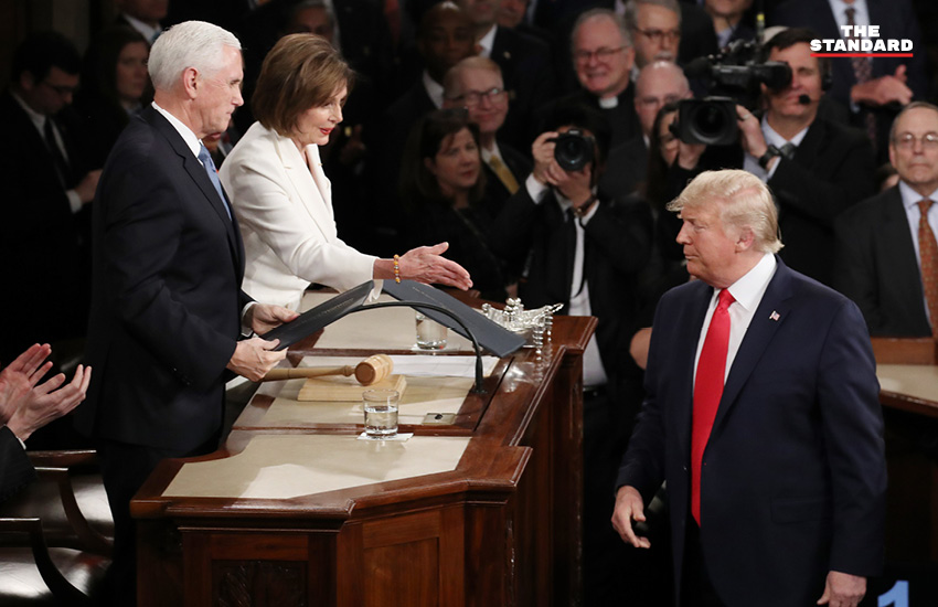 สำหรับการแถลงนโยบายครั้งนี้มีการแสดงท่าทีที่เป็นสัญญาณขัดแย้งระหว่างทรัมป์กับเปโลซี ประธานสภาผู้แทนราษฎร ซึ่งเป็นหนึ่งในผู้มีบทบาทผลักดันกระบวนการไต่สวนถอดถอนทรัมป์
