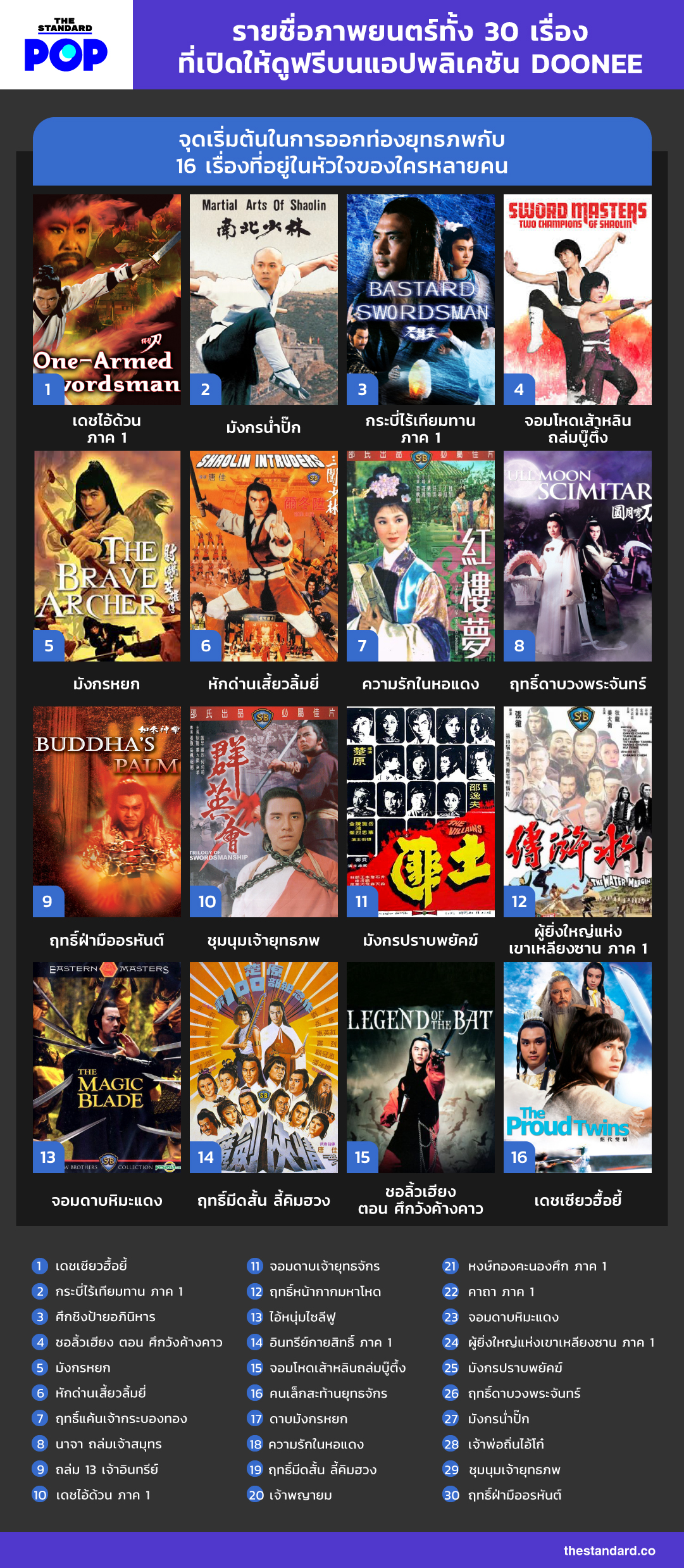 รายชื่อภาพยนตร์ทั้ง 30 เรื่องที่เปิดให้ดูฟรีบนแอปพลิเคชัน DOONEE