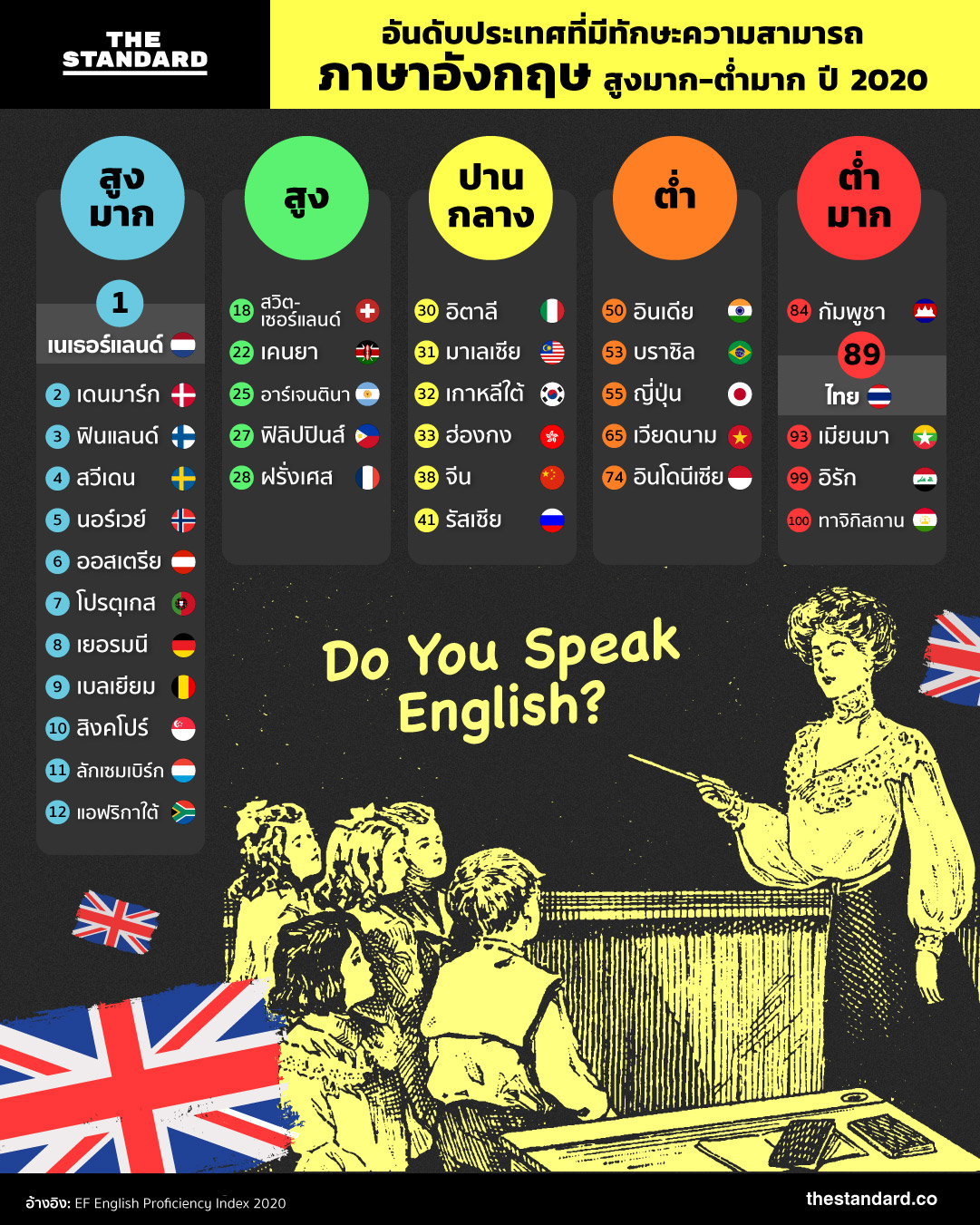 ไทยรั้งอันดับ 89 ของโลก ทักษะภาษาอังกฤษต่ำมาก 2 ปีติดต่อกัน อยู่โซนรั้งท้ายอาเซียน