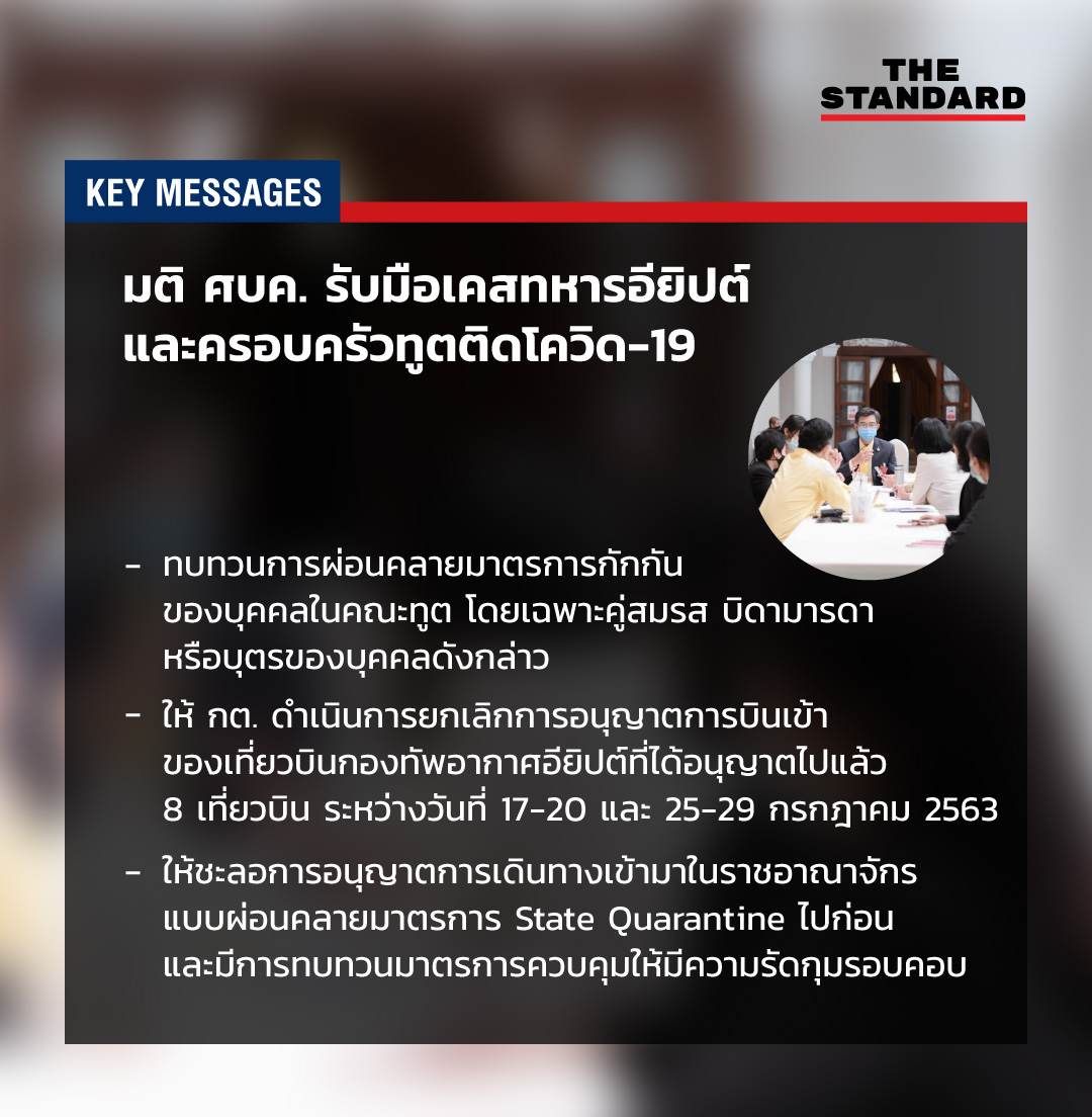 นพ.ทวีศิลป์ วิษณุโยธิน โฆษกศูนย์บริหารสถานการณ์การแพร่ระบาดของโรคติดเชื้อไวรัสโคโรนา 2019 (ศบค.) ได้แถลงชี้แจงกรณีที่มีทหารชาวอียิปต์ 1 คน ติดโควิด-19 และกรณีเด็กหญิง 9 ขวบ ลูกสาวคณะทูตจากภูมิภาคแอฟริกาติดเชื้อ