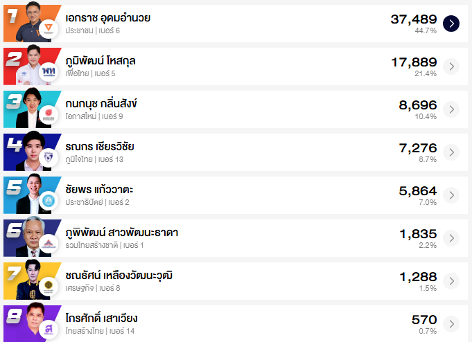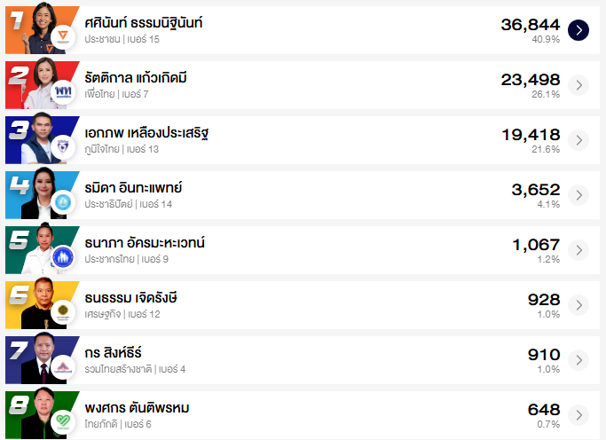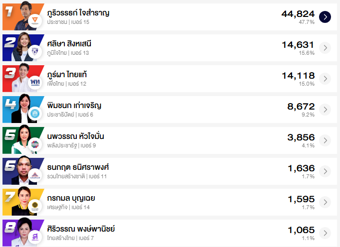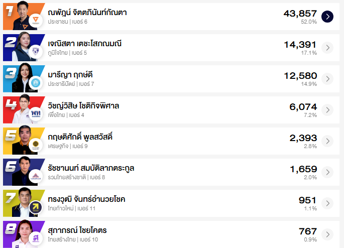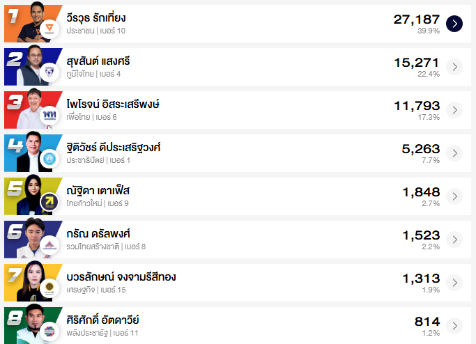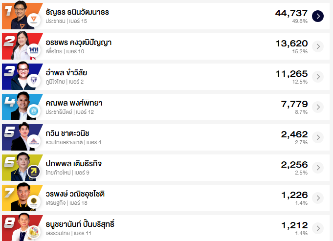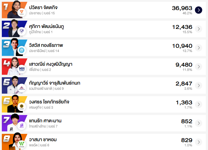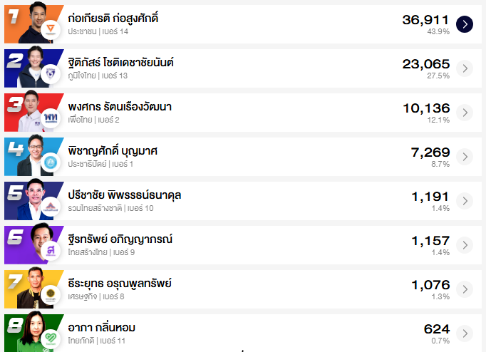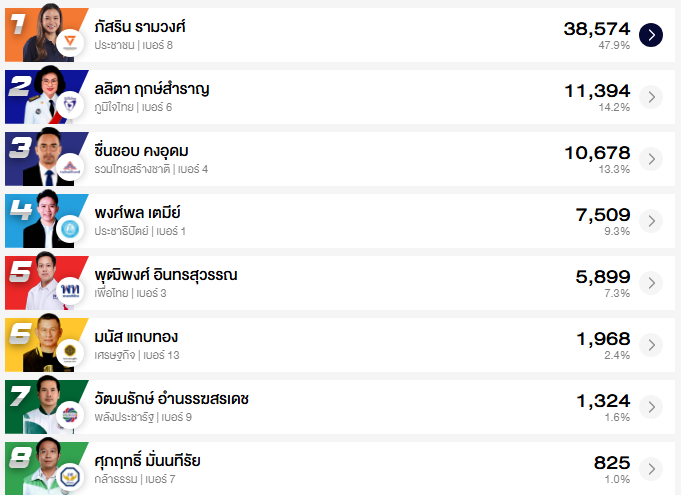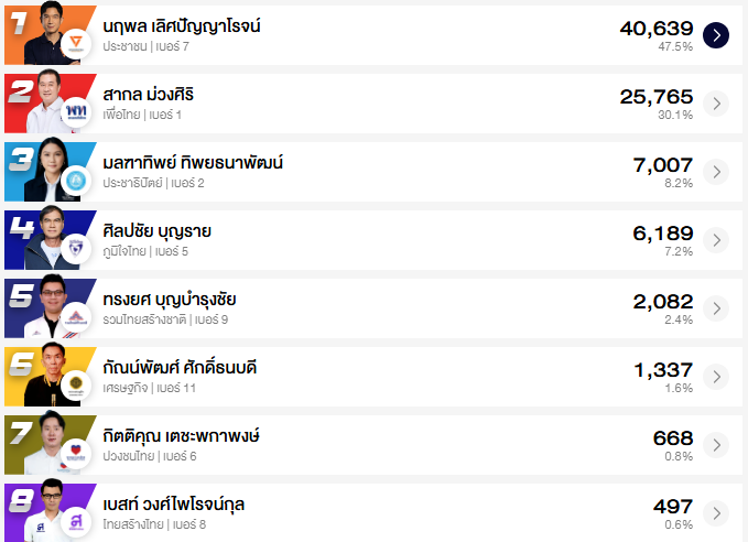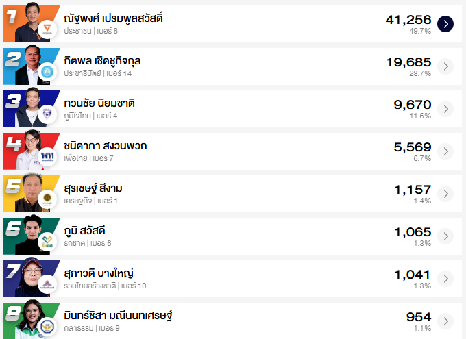 อัปเดต ผลคะแนนเลือกตั้ง สส. กทม. 33 เขต (อย่างไม่เป็นทางการ)